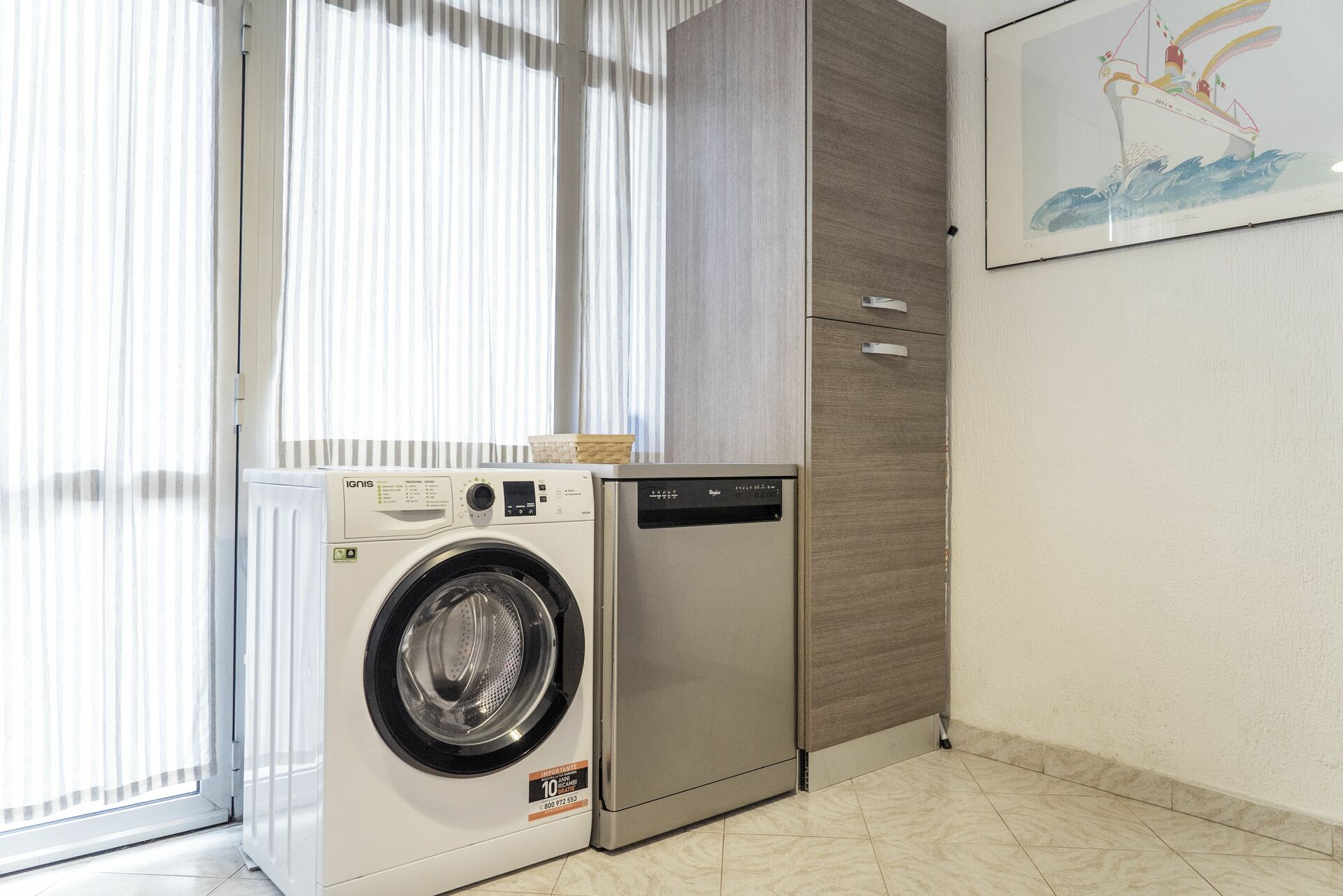 Küche (8 m2): gut ausgestattete Küche, Esstisch (Personen: 5), Spülmaschine, Kühlschrank, Tiefkühler, Herd, Ofen, Toaster, Italienische Kaffeemaschine, Waschmaschine, WiFi Internet, Rauchmelder, CO2 Detektor, Ausgang auf den Garten, Ausgang auf den Patio.