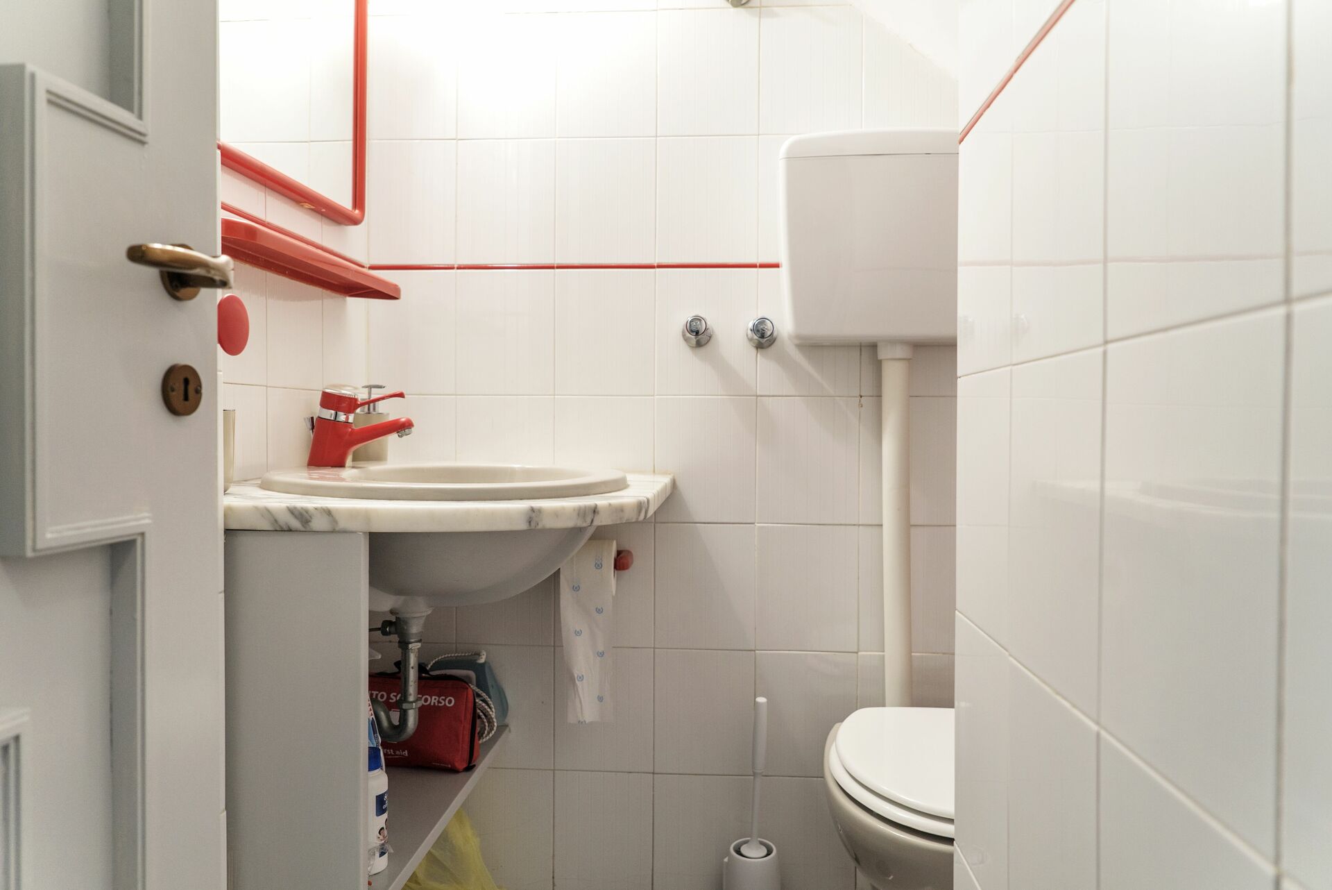 WC: Waschbecken, WC, Fön.