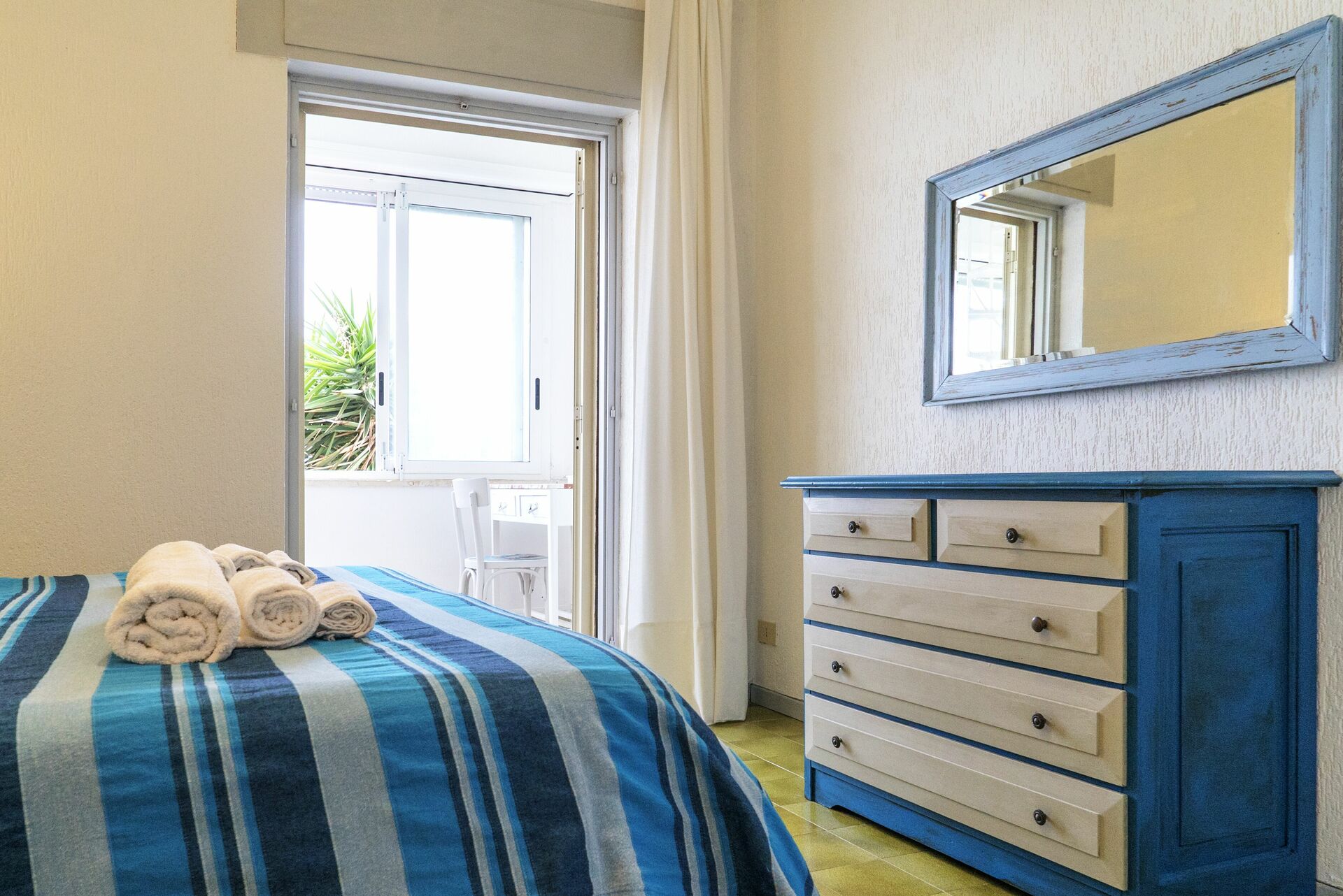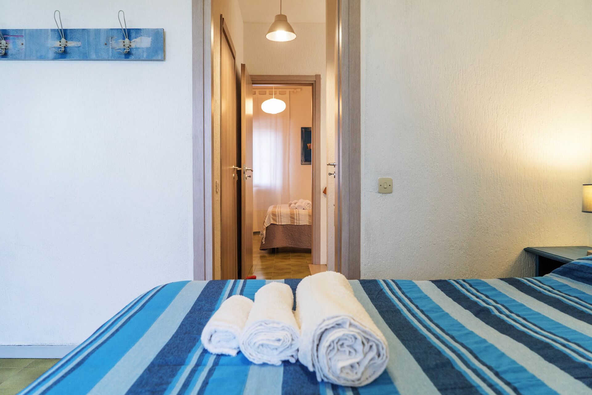 Schlafzimmer 1 (18 m2): Doppelbett (Breite: 160m, Länge: 190m), WiFi Internet, Klimaanlage, Ausgang auf den Balkon, Ausgang auf die Terrasse.