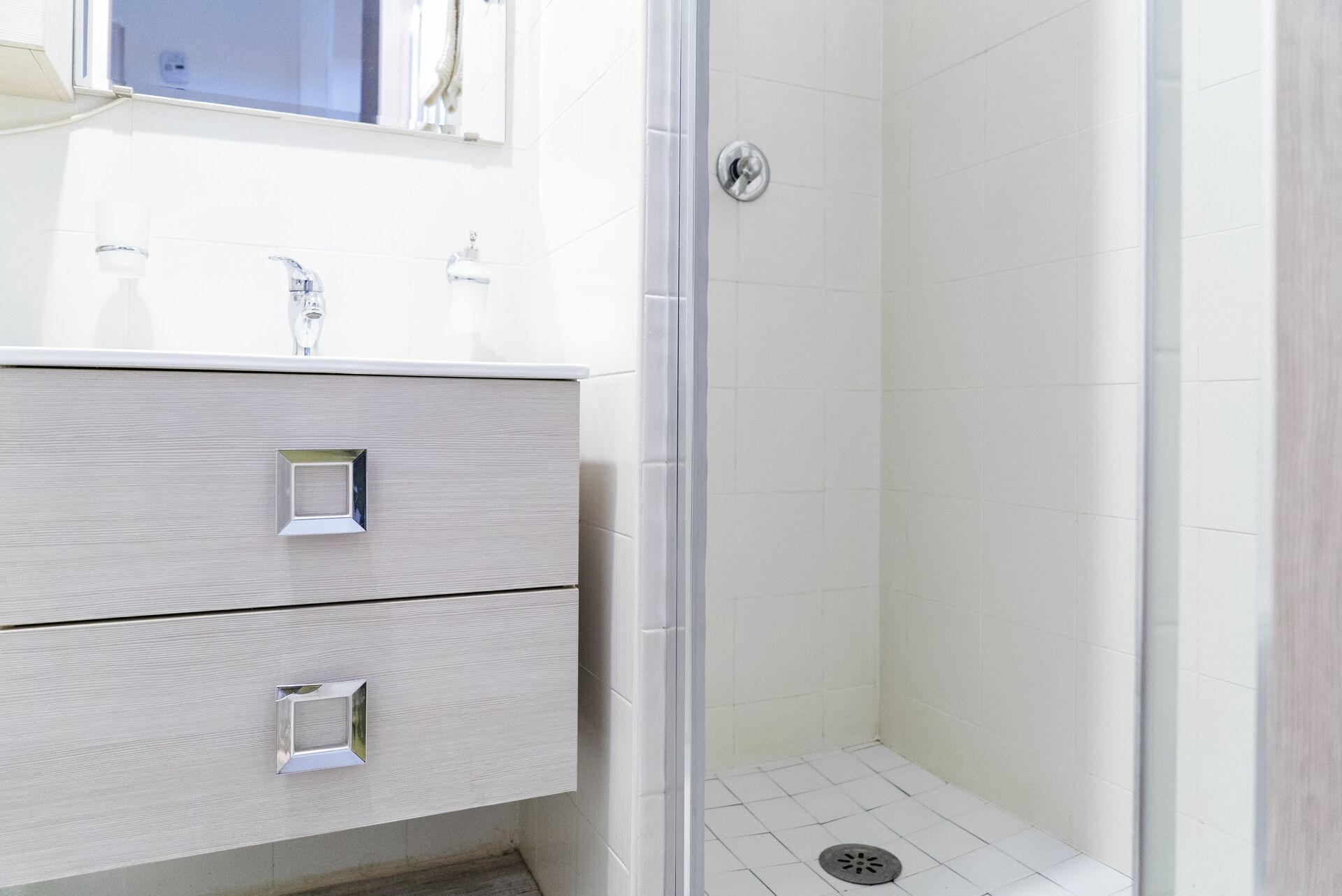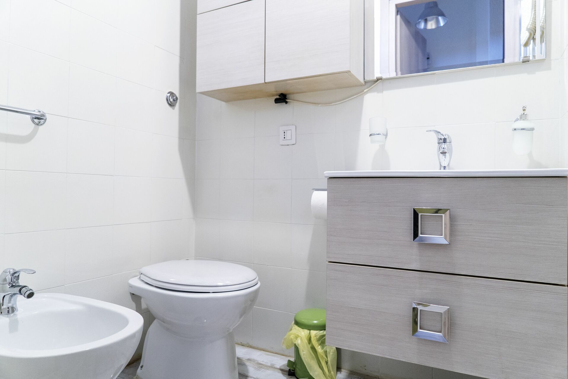 Badezimmer (7 m2): Waschbecken, WC, Bidet, Dusche, Fön, WiFi Internet.