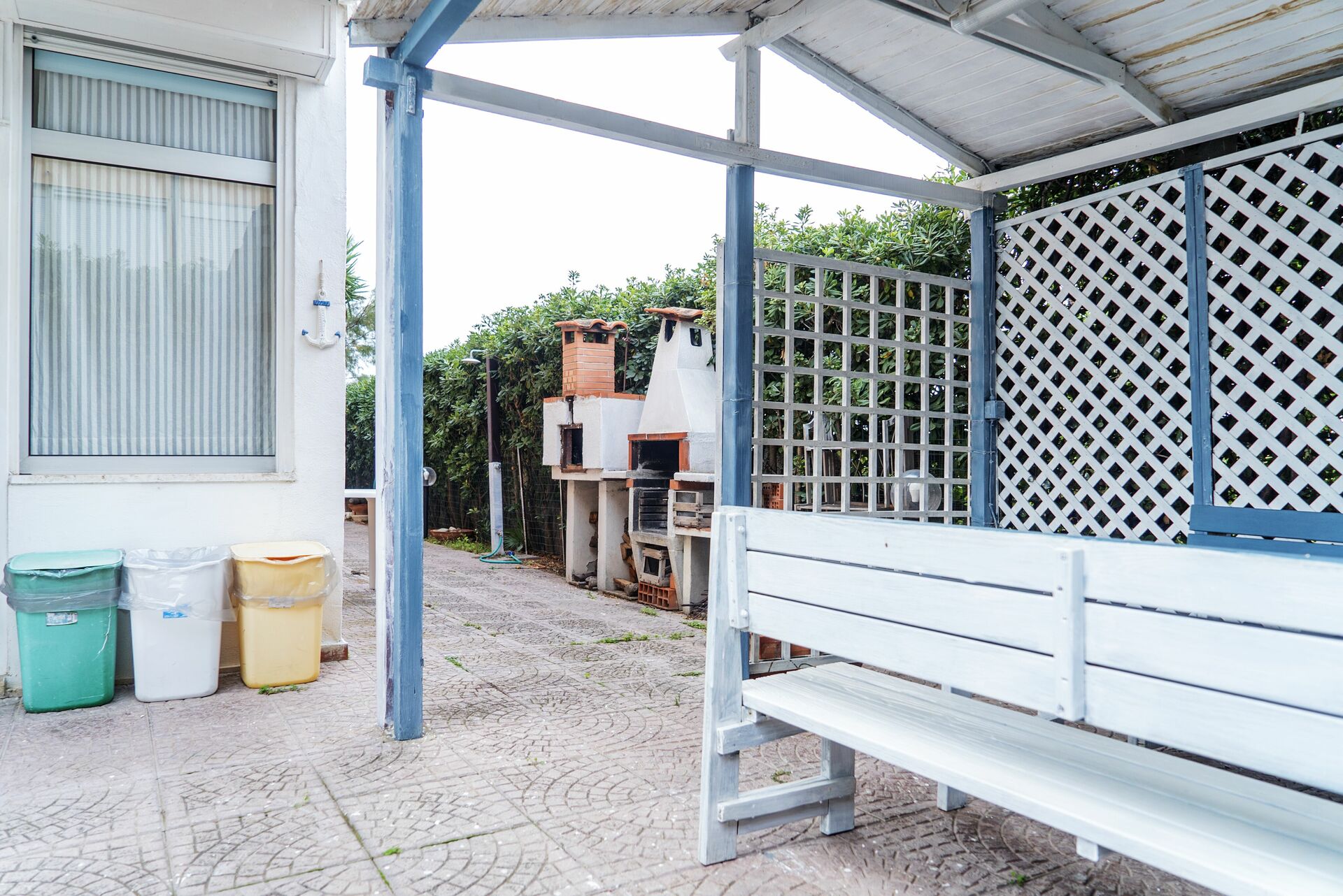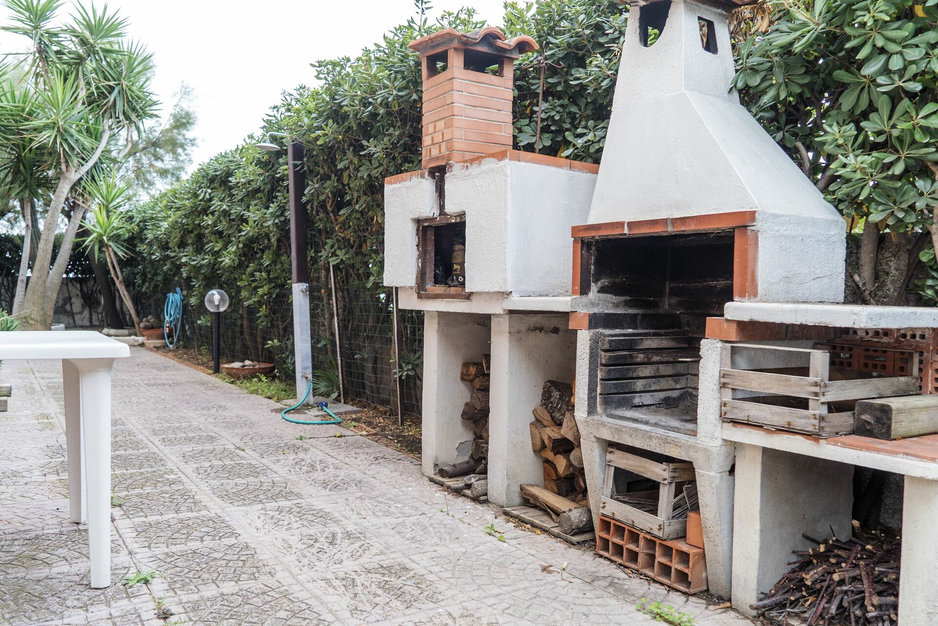 Garten (150 m2): Dusche, WiFi Internet, Grill, Außenbereich für das Essen im Freien, Esstisch (Personen: 8), Pavillon, Gartenmöbel, Sonnenliege, umzäuntes Grundstück.