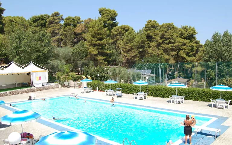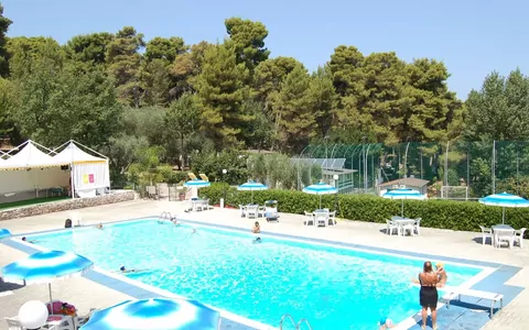 Kinderfreundliches Feriendorf "Internazionale Camping Village". Im Ort San Menaio, 7 km vom Zentrum von Rodi Garganico, 13 km vom Zentrum von Peschici, auf einem Hügel, 350 m vom Meer, 350 m vom Strand, im Grünen. Zur Mitbenutzung: naturbelassenes Grundstück mit Bäumen, Schwimmbad (20 x 7 m, 110 - 300 cm tief, saisonale Verfügbarkeit: 31.Mai. - 07.Sep.). Aussendusche, Tischtennis, Volleyball, Terrasse, Gartenmöbel, Grill, Kinderspielplatz. In der Anlage: Empfang, Restaurant, Bar, Wireless LAN (extra). Einkaufsmöglichkeit, Waschmaschine (extra) (zur Mitbenutzung). Parkplatz. Einkaufsgeschäft, Lebensmittelgeschäft 350 m, Bushaltestelle 1 km, Bahnstation "San Menaio" 1.2 km, Sandstrand 350 m. Nahe gelegene Sehenswürdigkeiten: Vico del Gargano 8 km. Bekannte Seen in der Umgebung sind gut erreichbar: Lago di Varano 20 km. Der Besitzer akzeptiert keine Jugendgruppen. Badekappenpflicht.