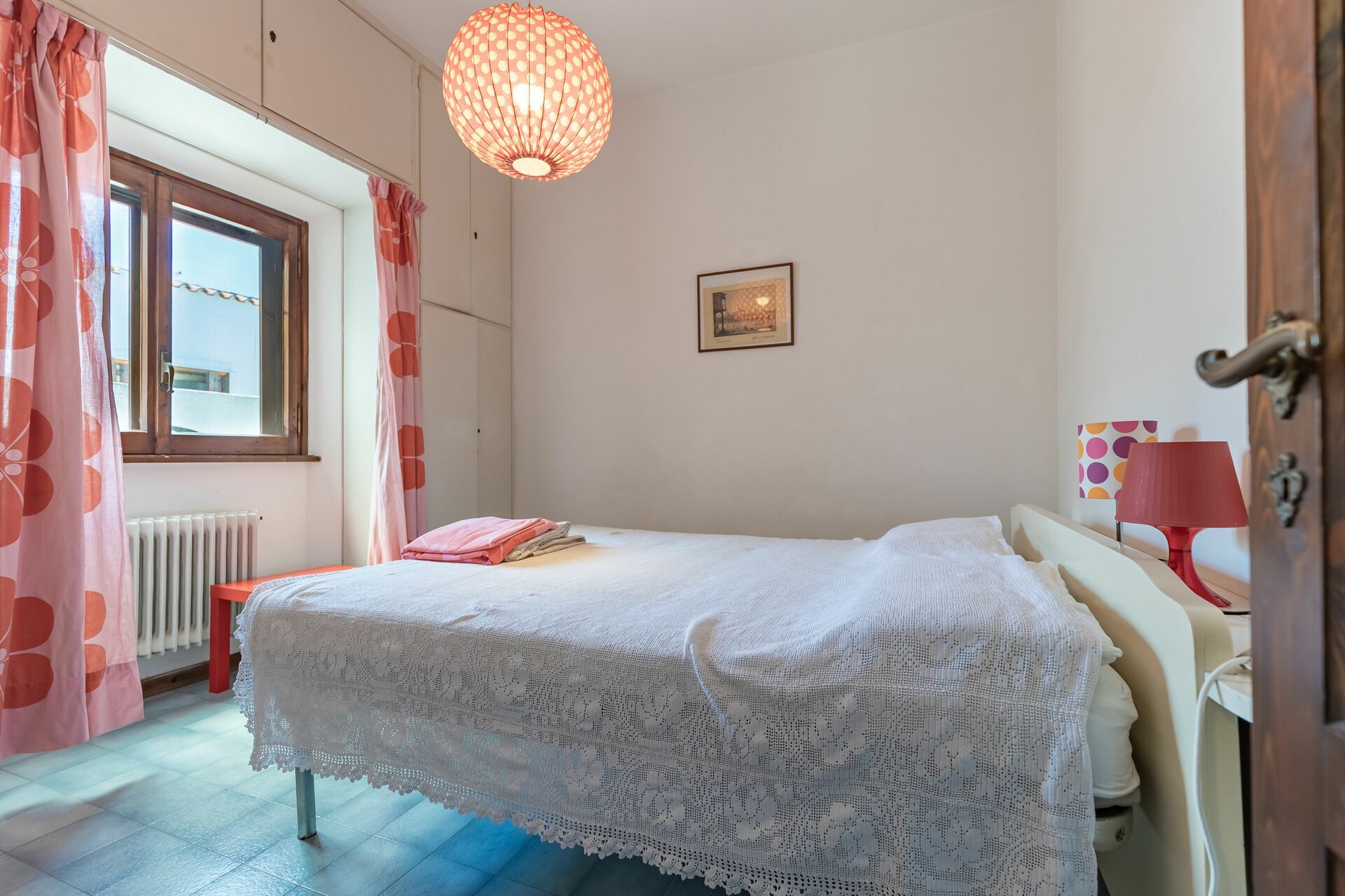 Schlafzimmer 1 (12 m2): Doppelbett, WiFi Internet, tragbarer Ventilator, Sessel, Schreibtisch, Ausgang auf den Balkon.