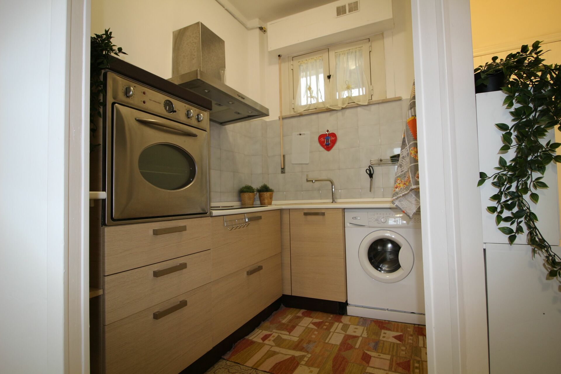 Küche: gut ausgestattete Küche, Kühlschrank, Küchenherd, Ofen, Toaster, Italienische Kaffeemaschine, Amerikanische Kaffeemaschine, Waschmaschine.