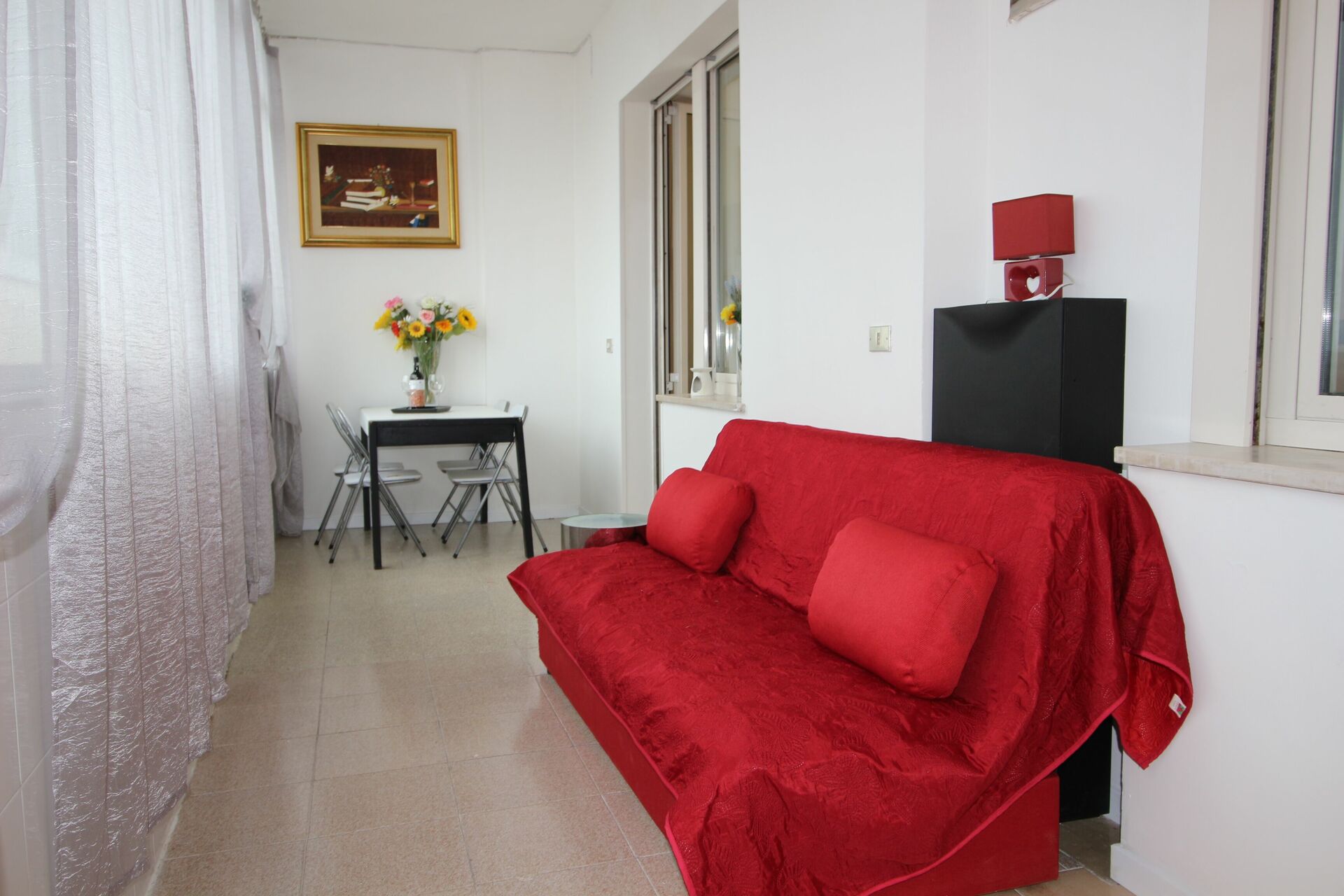 Nach Ankunft werden Sie eine reizende, saubere und gut gepflegte Unterkunft finden, mit Ausblick auf das Meer erstklassig für einen erholsamen Marken-Urlaub. Egal womit Sie Ihre Tage hier verbringen - Einkaufen, Sightseeing, Museumsbesuche oder einfach nur durch die Landschaft fahren, wenn Sie wieder in Ihrem Ferienheim ankommen, können Sie sich mit Familie und Freunden ausruhen, um Ihren Marken-Tag perfekt ausklingen zu lassen. Speisen mit Freunden und Familie ist ein wichtiger Bestandteil der italienischen Kultur. Nutzen Sie die gut ausgestattete Küche, um Mahlzeiten aus lokalen Produkten vorzubereiten, während Sie im Urlaub sind. Die Küche kommt mit Kaffeemaschine, Toaster, Herd und Kühlschrank, sowie ausreichend Geschirr und Besteck für bis zu vier Personen. Speisen Sie 'al Fresco' wie ein echter Italiener - die komplett eingerichtete Terrasse ist eine erstklassige Kulisse, um das Essen, die Familie und das hübsche italienische Wetter zu genießen.