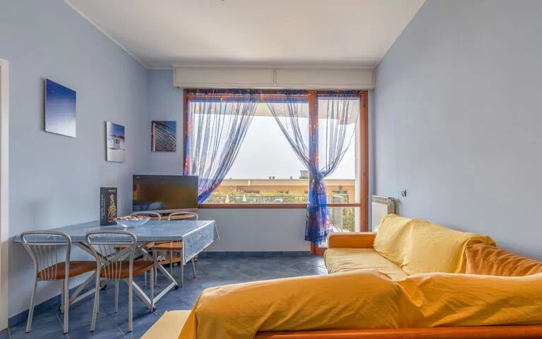 3-Zimmer-Wohnung 75 m2 im 1. Stock. Geschmackvoll und gemütlich eingerichtet: Wohn-/Esszimmer mit 2 Diwanbetten (90 cm, Länge 200 cm), TV. Ausgang zum Balkon. 1 Doppelzimmer. Ausgang zum Balkon. 1 Zimmer mit 2 x 1 Etagenbetten (90 cm, Länge 200 cm). Kochnische (Backofen, Geschirrspüler, 4 Flammen, Mikrowelle). Dusche/Bidet/WC. G-Heizung. Heizung nur verfügbar von 01.11. bis 15.04. Grosse Terrasse 30 m2. Terrassenmöbel. Eingeschränkte Sicht auf das Meer. Zur Verfügung: Waschmaschine. Internet (WLAN, gratis). IT008017C2X4T9NCLA