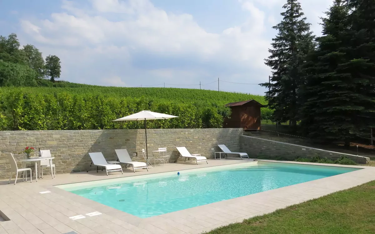 Sehr schönes, freistehendes, komfortables Landhaus "Castellaio", auf 2 Stockwerken, renoviert im Jahre 2020, umgeben von Bäumen und Weinbergen. Ausserhalb des Ortes, 2 km vom Zentrum von Vesime, sonnige, erhöhte Lage, im Grünen. Zur Alleinbenutzung: naturbelassenes Grundstück 3'000 m2, grosser Garten mit Rasen und Bäumen, Schwimmbad (10 x 5 m, 140 cm tief, saisonale Verfügbarkeit: 01.Mai. - 15.Okt.). Aussendusche, Poolhaus mit Kühlschrank und Kochherd, Pergola, Terrasse, Gartenmöbel, Poolpflege durch den Besitzer/Gärtner. Im Hause: Waschmaschine. Parkplatz (für 4 Autos) beim Haus auf dem Grundstück. Lebensmittelgeschäft 2 km, Supermarkt 5 km, Bushaltestelle 34 km. Nahe gelegene Sehenswürdigkeiten: Acqui Terme 26 km, Alba 34 km, Asti 45 km, Turin 95 m.