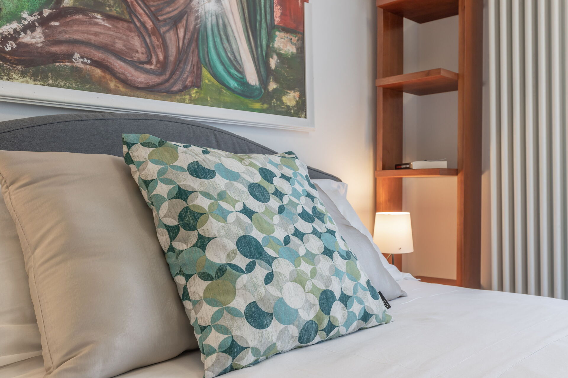 Wohnküche: gut ausgestattete Küche, Esstisch, Kühlschrank, Tiefkühler, Mikrowelle, Ofen, Toaster, Italienische Kaffeemaschine, Amerikanische Kaffeemaschine, Schreibtisch, Doppel-Schlafsofa, WiFi Internet, Klimaanlage, Satelliten-TV, Ausgang auf den Balkon. Schlafzimmer: Doppelbett, WiFi Internet, Klimaanlage, Sessel, Ausgang auf den Balkon. Badezimmer: Waschbecken, WC, Bidet, Dusche, Fön, Waschmaschine.