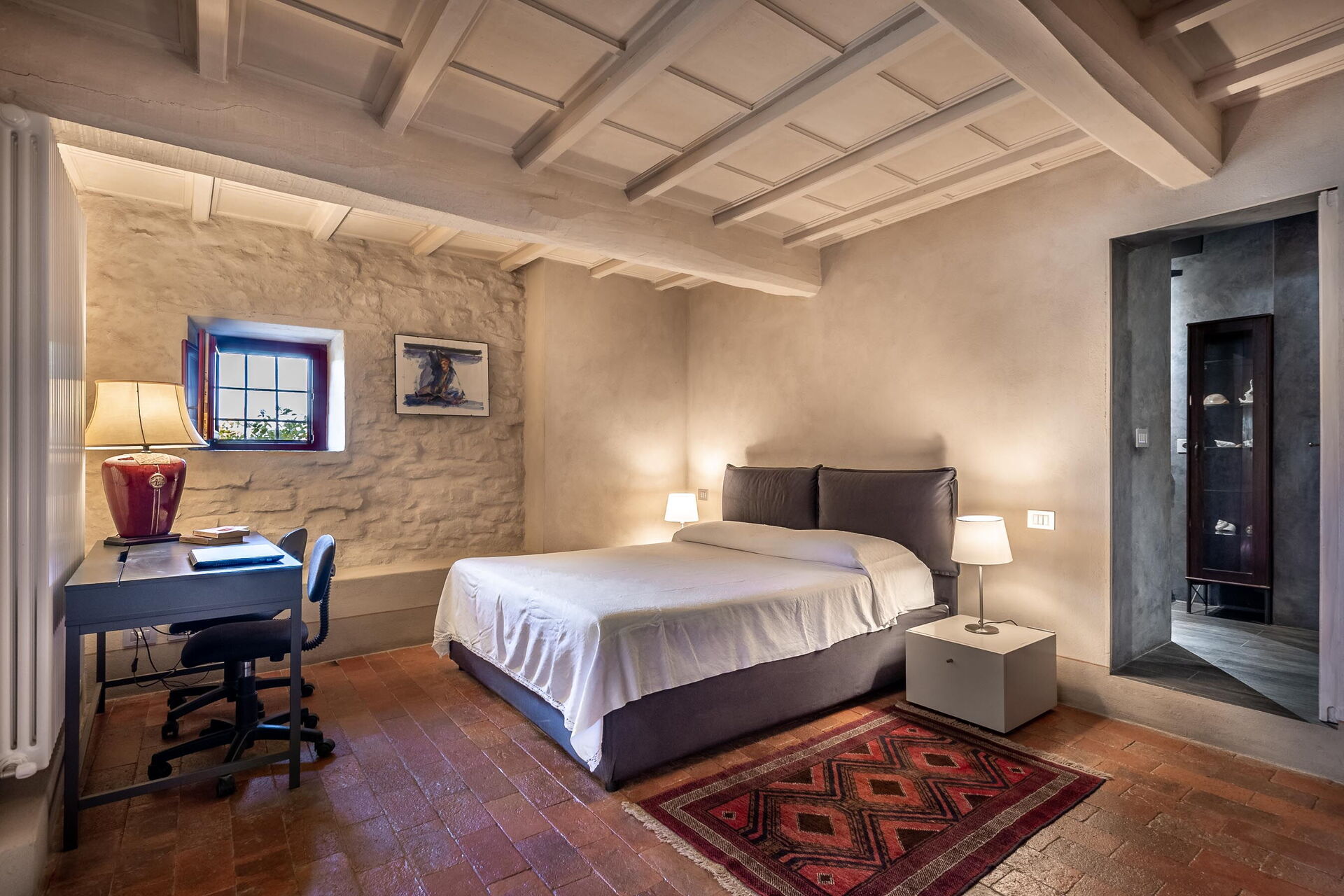 Schlafzimmer: Doppelbett, WiFi Internet, Fliegengitter, tragbarer Ventilator, Schreibtisch.