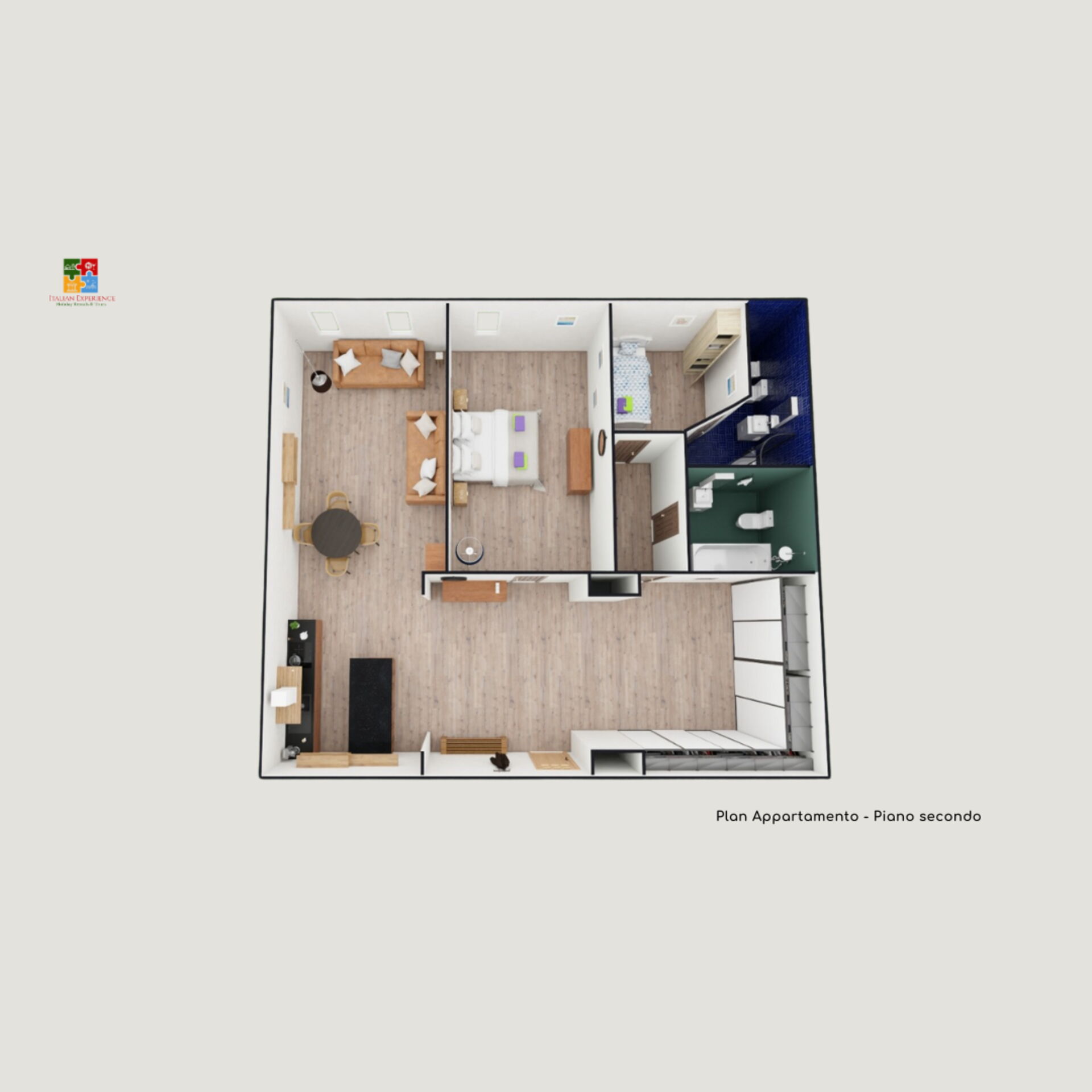 Mit Küche, Wohnzimmer, 2 Schlafzimmer, 2 Badezimmer.