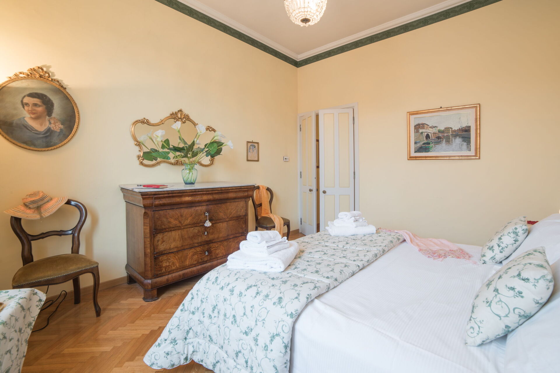 Schlafzimmer 1: Doppelbett, WiFi Internet, Klimaanlage, Sessel, Schreibtisch.