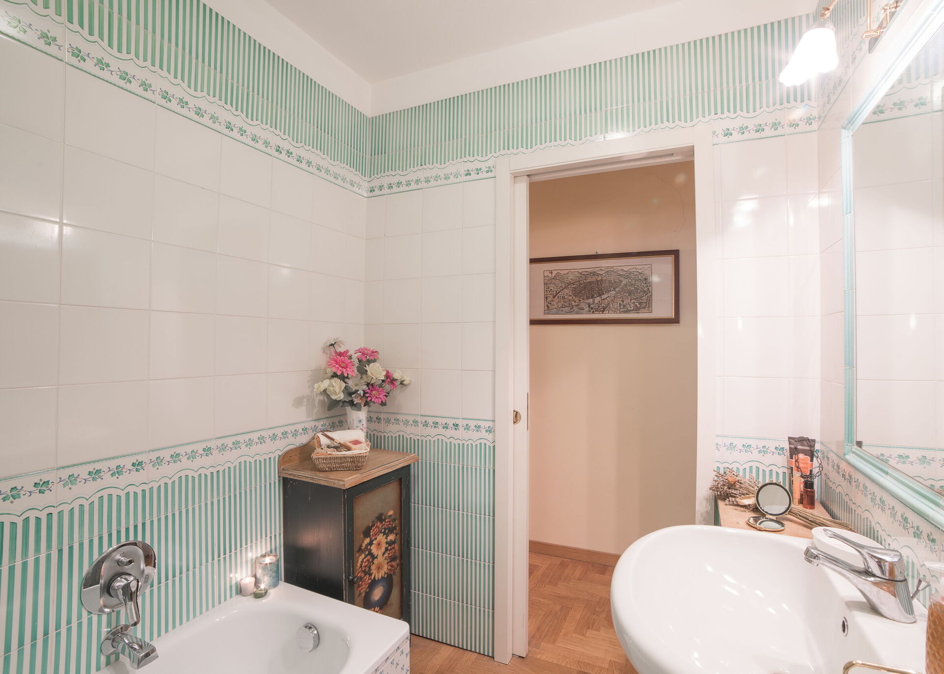 Badezimmer 1: Waschbecken, WC, Bidet, Badewanne.