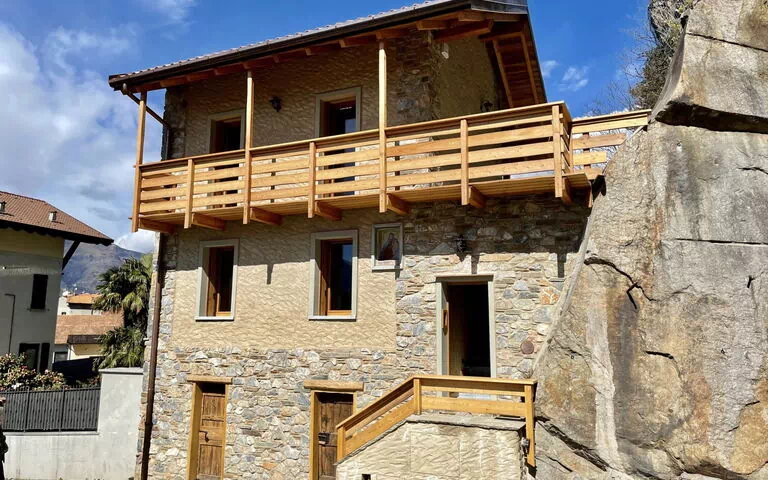 Sehr komfortables, historisches Haus "Scalotta", auf 3 Stockwerken, aus dem 17. Jahrhundert, renoviert im Jahre 2022. 2 Wohnungen im Ferienhaus. Im Ort Dervio, 9 km vom Zentrum von Varenna, 30 km vom Zentrum von Lecco, exzellente Lage: Absolut zentral und dennoch ruhig, 900 m vom See, in einer Sackgasse, im Grünen. Zur Mitbenutzung: Grundstück 5'000 m2, Naturgarten. Im Hause: Einstellraum für Fahrräder, Skiraum, Waschmaschine. Wohnungsreinigung möglich (extra). Treppenweg (7 Stufen) bis zum Haus. Parkplatz (für 3 Autos). Elektroauto-Ladestation. Einkaufsgeschäft 150 m, Lebensmittelgeschäft 180 m, Supermarkt 400 m, Restaurant 130 m, Bar, Bäckerei 450 m, Zentrum zu Fuss in 5 Minuten erreichbar, Bahnstation 450 m, Fähre 950 m, Grasstrand "Dervio" 850 m. Jacht-Hafen 1 km, Surfschule, Segelschule 800 m, Wanderwege ab Haus 10 m, Kinderspielplatz 900 m. Nahe gelegene Sehenswürdigkeiten: Torre di Orezia 1 km, Corenno Plinio 3 km, Orrido di Bellano 4 km, Menaggio 13 km. Bekannte Skigebiete sind gut erreichbar: Madesimo 57 km, Chiesa in Valmalenco 65 km, St. Moritz 80 km. Bekannte Seen in der Umgebung sind gut erreichbar: Lago di Mezzola. Wandergebiete: Monti di Dervio e Muggiasca, Sentiero del Viandante, Sentieri Valvarrone. Jugendgruppen nur auf Anfrage. An den Felswänden, die das Haus umgeben, ist die jahrtausendelange Formung durch den Gletscher, der den heutigen Comer See entstehen ließ, deutlich sichtbar. An der oberen Mauer des Grundstücks, die zu Fuß in ca. 10-15' zu erreichen ist, befindet sich eine alte Kapelle, die den Seelen im Fegefeuer gewidmet ist. Von hier aus hat man einen außergewöhnlichen Blick auf Dervio und den gesamten zentralen Teil des Comer Sees bis hin zu Bellagio und der Insel Comacina.