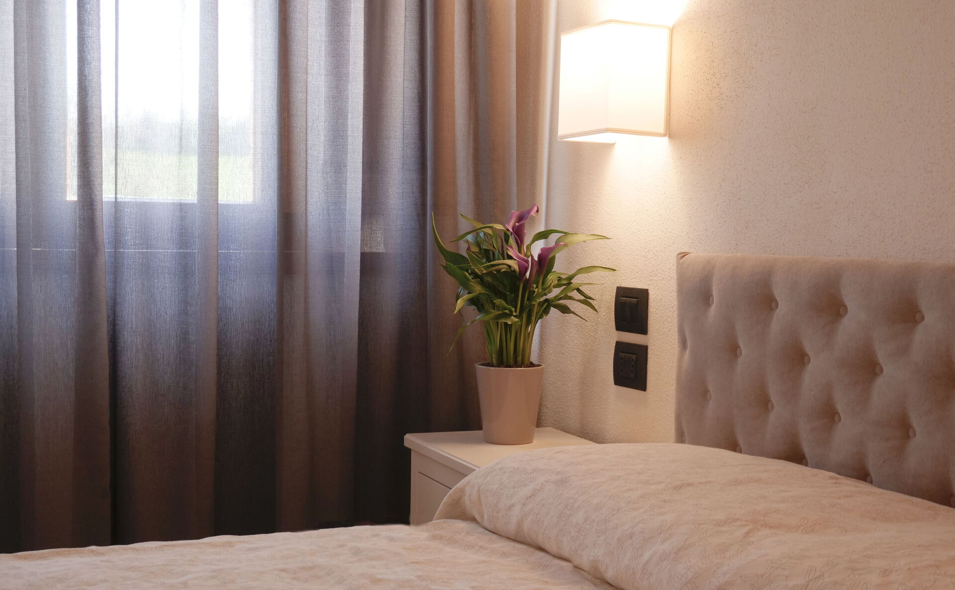 Schlafzimmer mit Bad 1: Doppelbett, Einzelbett, WiFi Internet, Klimaanlage, Waschbecken, WC, Bidet, Dusche, Fön.
