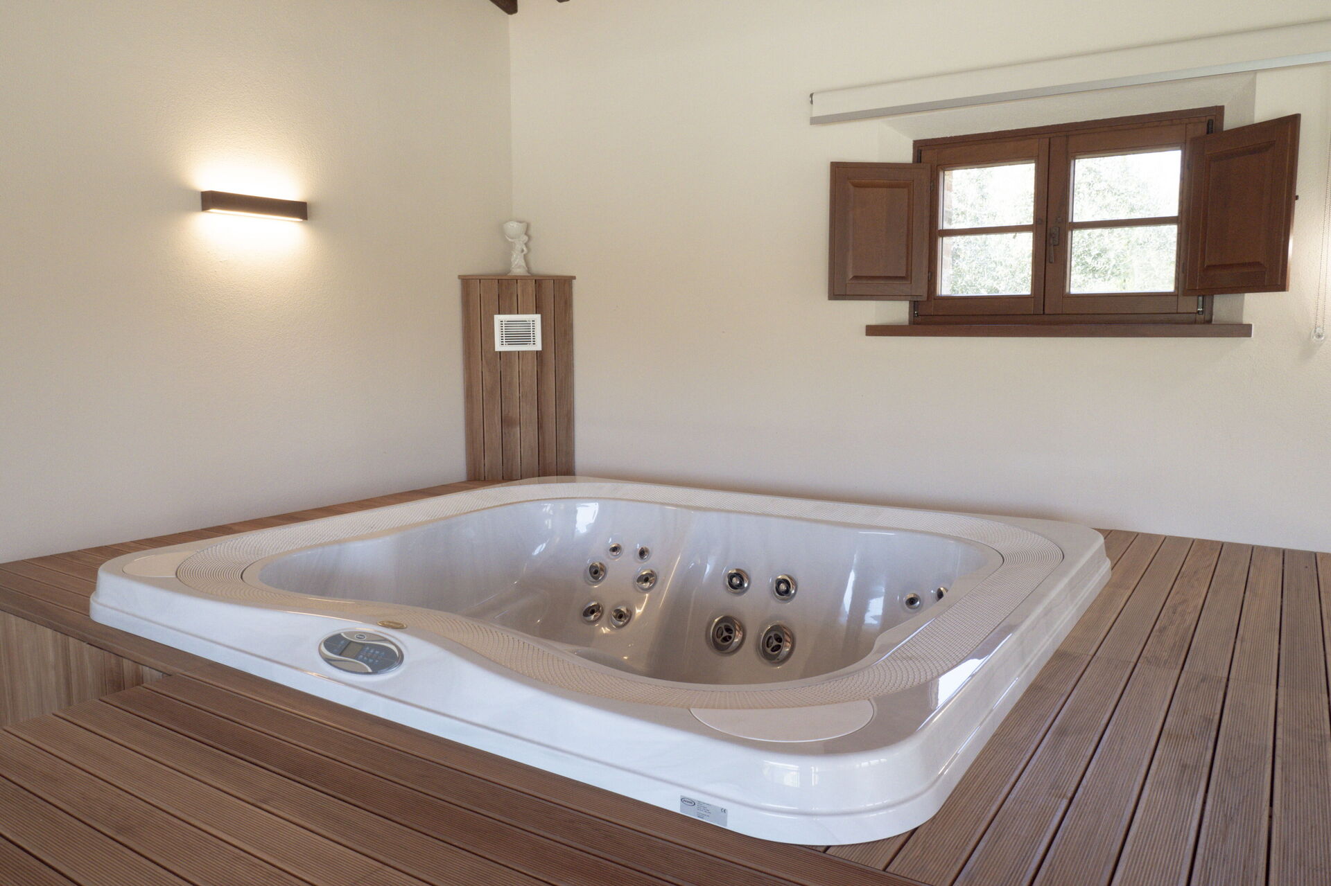 Wellnessbereich: Heißwasser-Whirlpool im Haus, Dusche, Sauna, vier Sonnenliegen, WiFi Internet, Dampfbad.