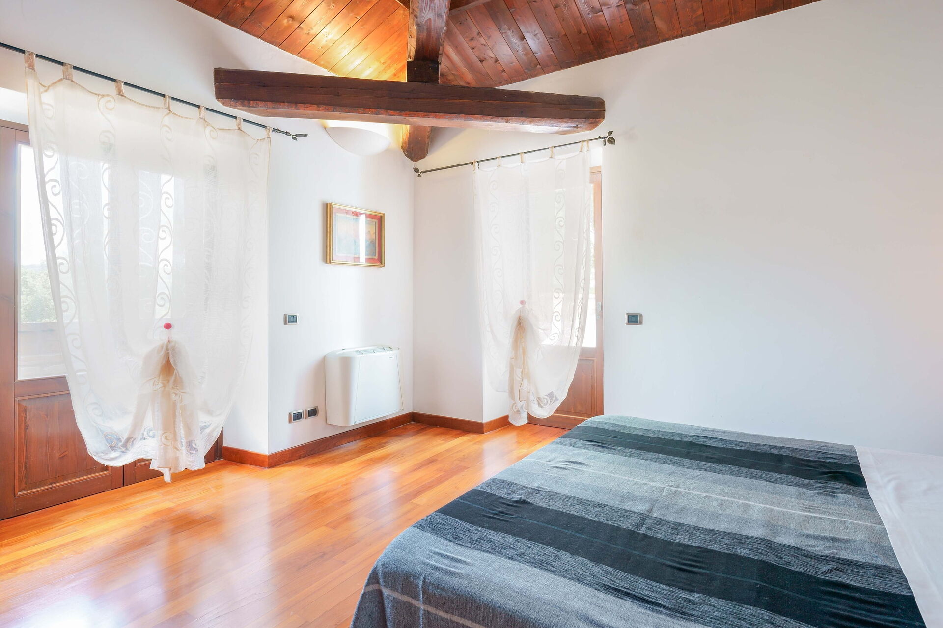 Schlafzimmer 1 (20 m2): Doppelbett (Breite: 160m, Länge: 190m), WiFi Internet, Fliegengitter, Sessel, Ausgang auf den Balkon, Ausgang auf die Terrasse.