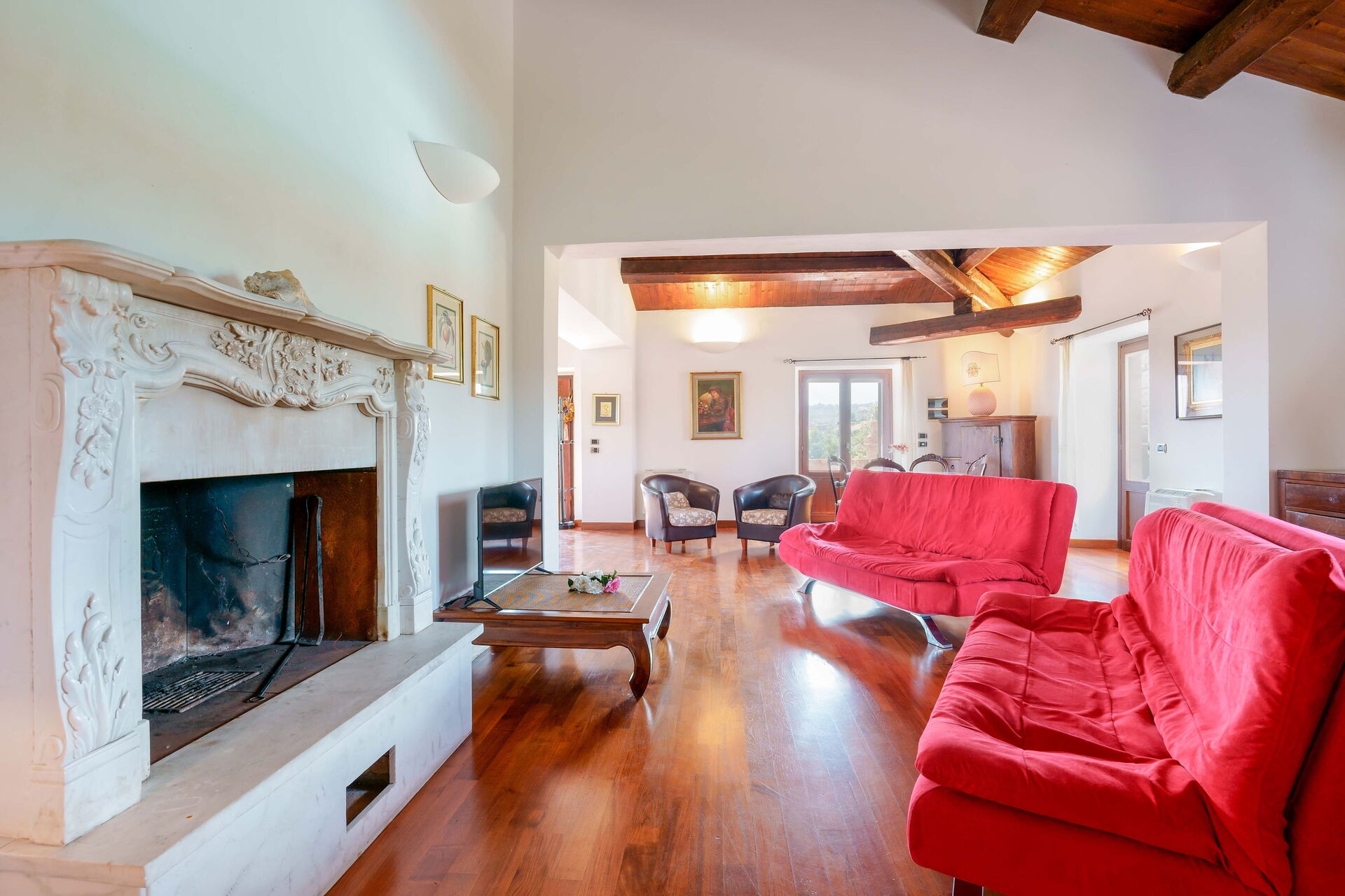 Wohnküche (200 m2): gut ausgestattete Küche, Esstisch, Spülmaschine, Kühlschrank, Tiefkühler, Mikrowelle, Herd, Ofen, Toaster, Bügeleisen, Italienische Kaffeemaschine, Amerikanische Kaffeemaschine, zwei Sofas, zwei Sessel, Kamin, WiFi Internet, Ausgang auf den Garten, Ausgang auf den Patio, Ausgang auf die Veranda.