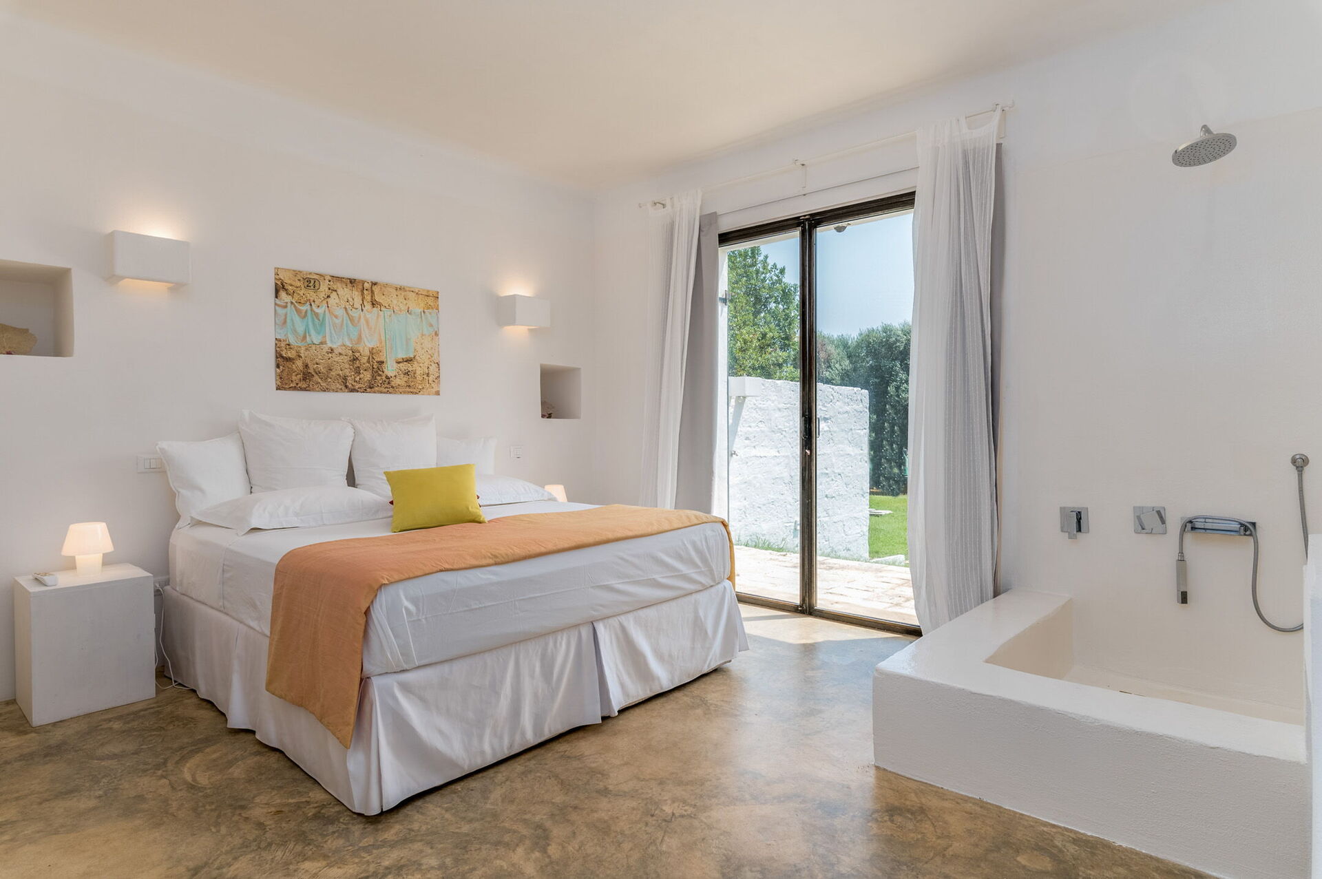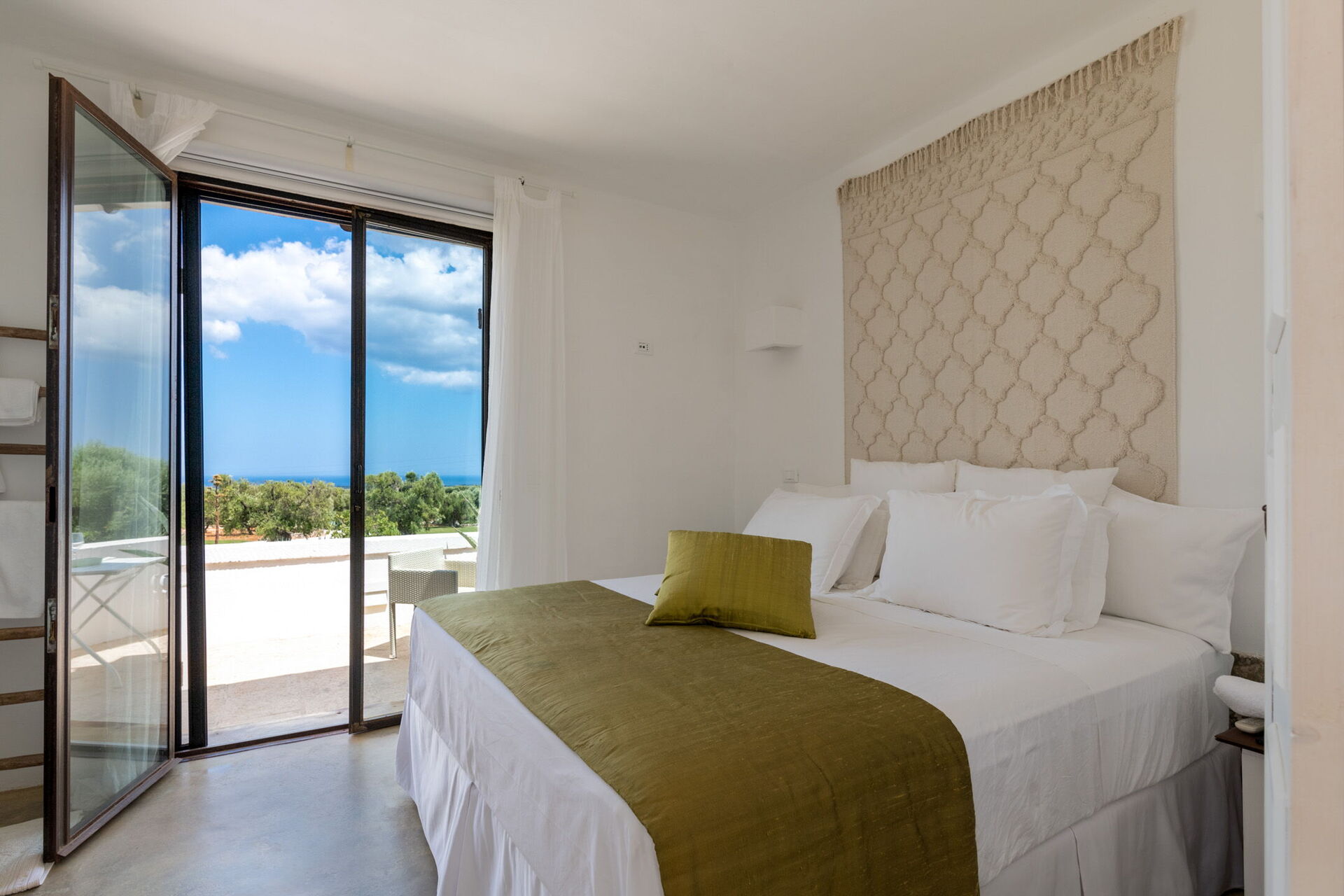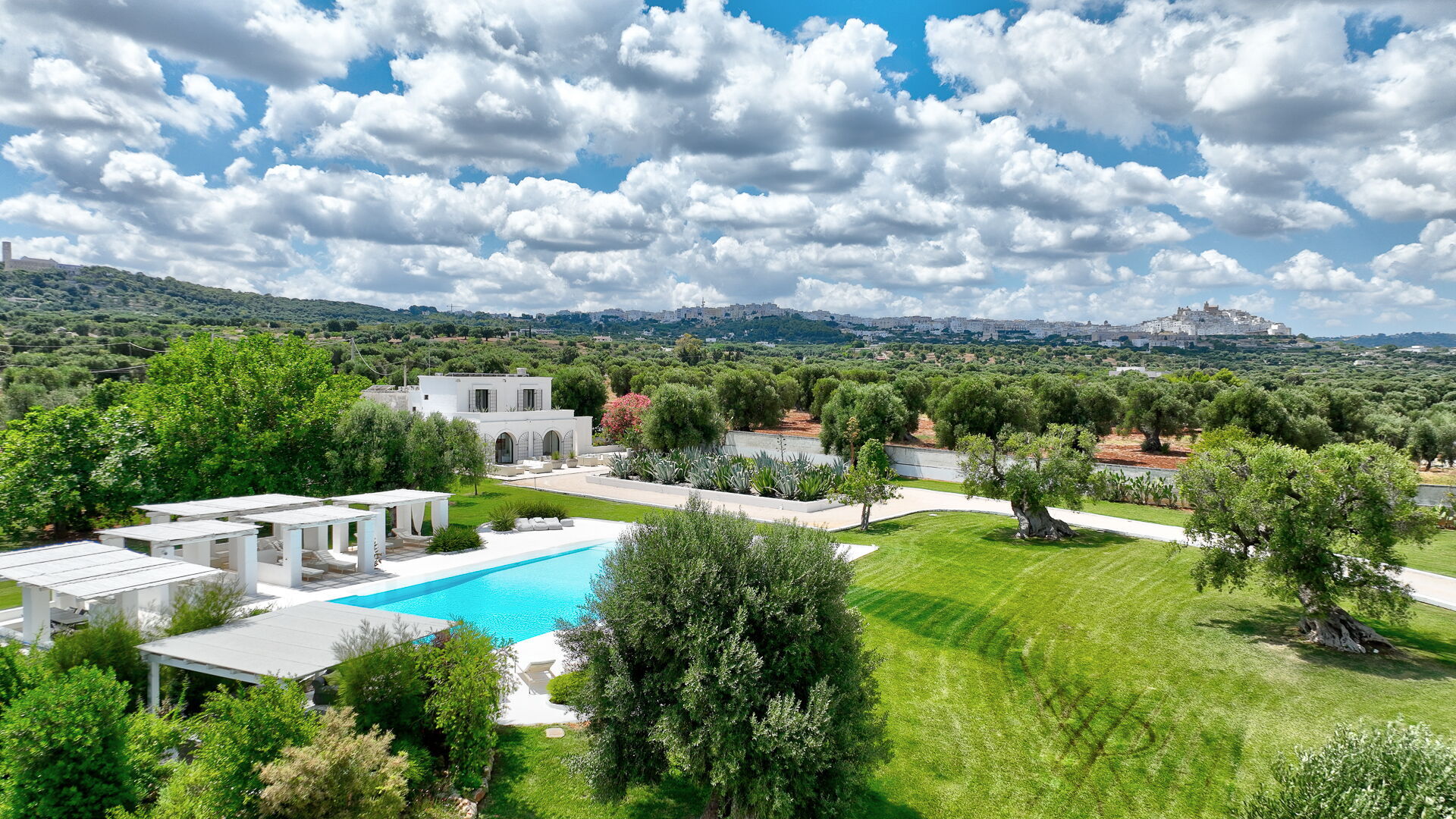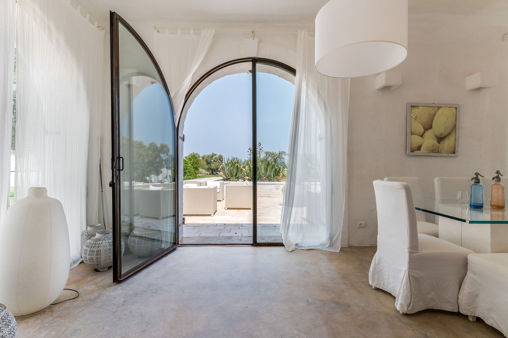The Villa is located within the "Piana degli Ulivi Monumentali", an enormous flat expanse cultivated with olive trees with centuries-old and thousand-year-old trees, spread over two levels and is composed of a large living area, an island kitchen and nine bedrooms. double rooms with en-suite bathroom as well as a garden with a large swimming pool.