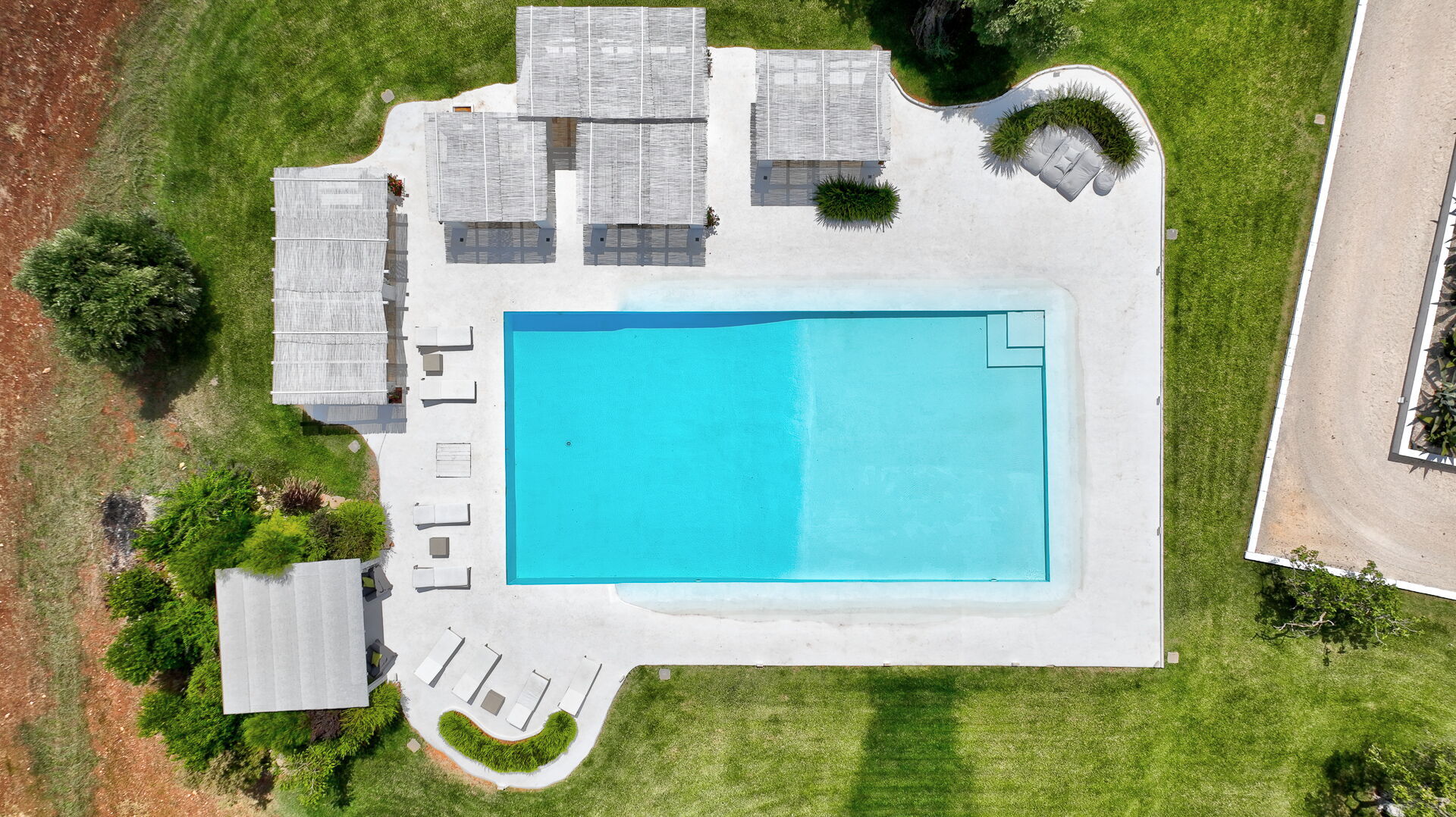 Located on the sides of the pool, resting on the flooring with typical local stones, there are 10 sun loungers. A short distance from the swimming pool you will find the external bathrooms with showers.