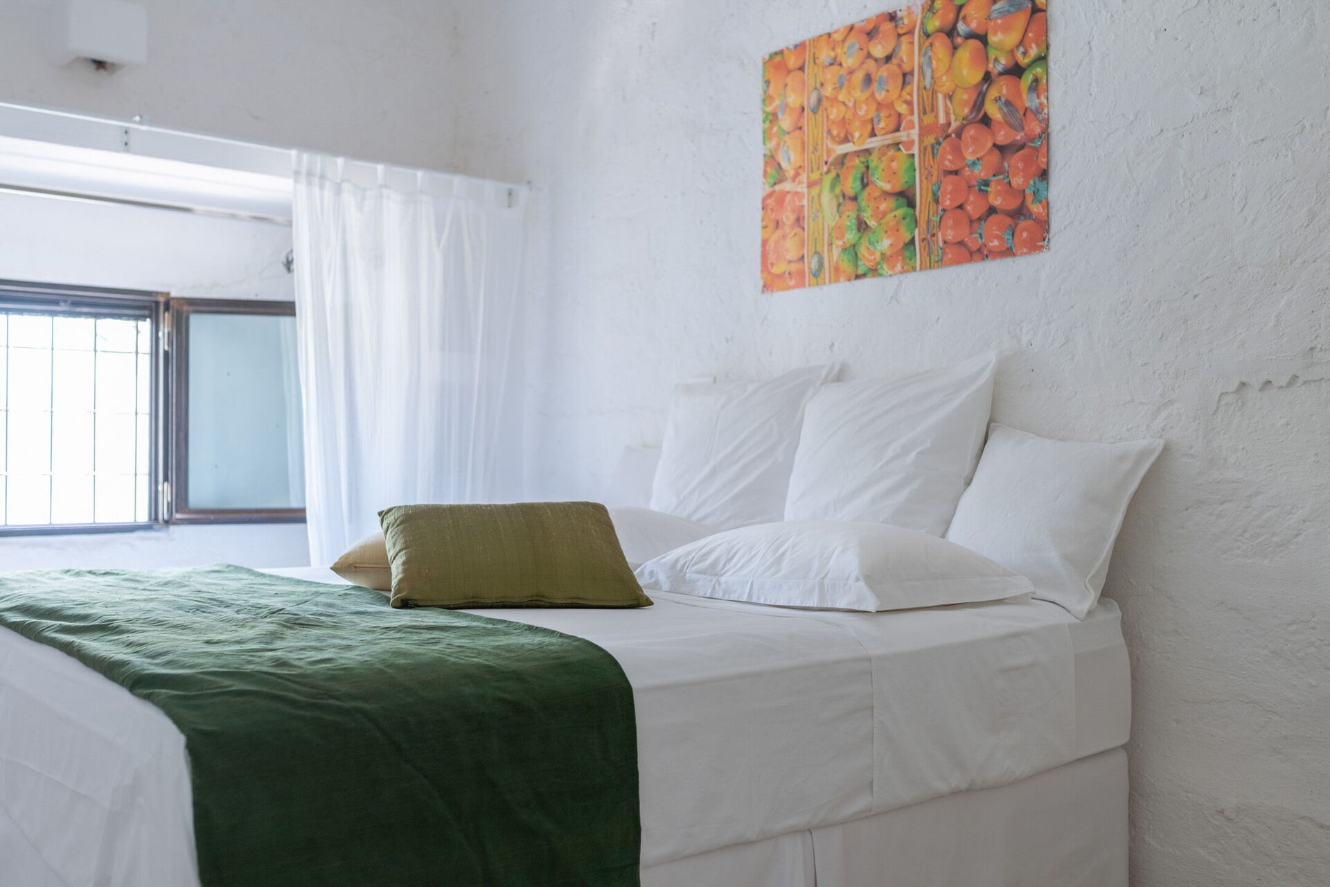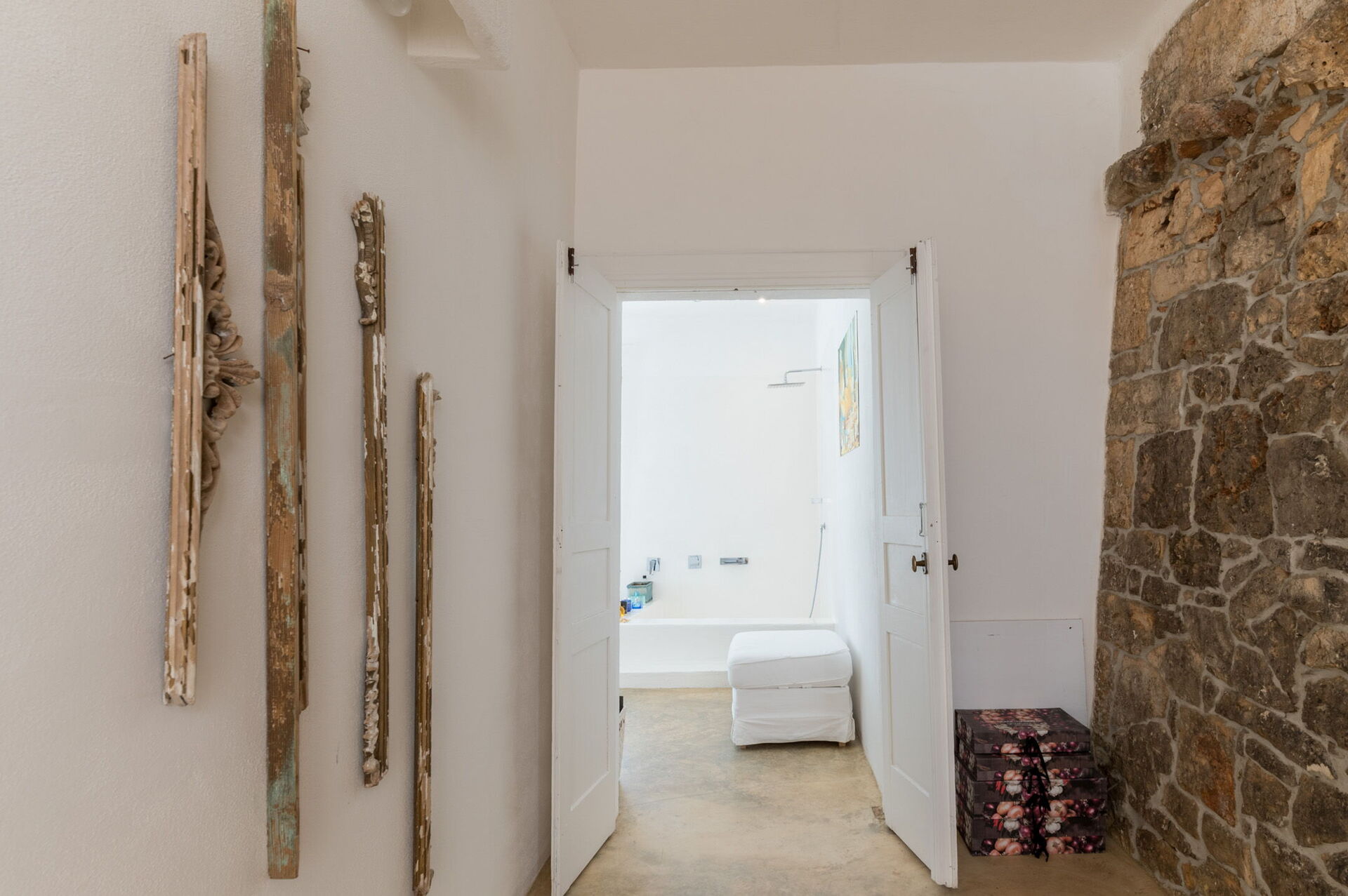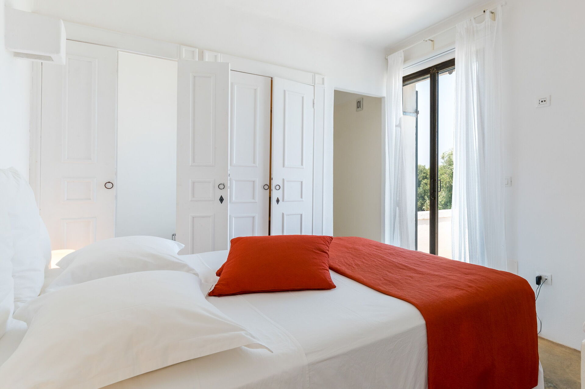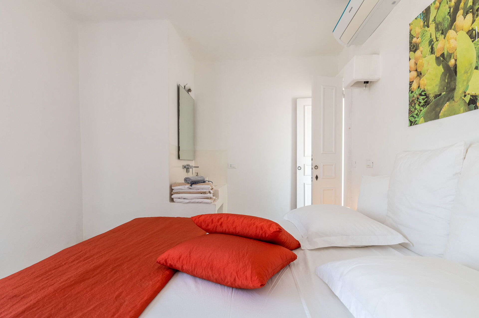 The second sleeping area is preceded by a living room with sofas and a glass pergola shaded by wonderful white drapes, from here you have access to two double bedrooms with characteristic exposed dry stone walls, as well as the further 3 double bedrooms which also have access from the outside.