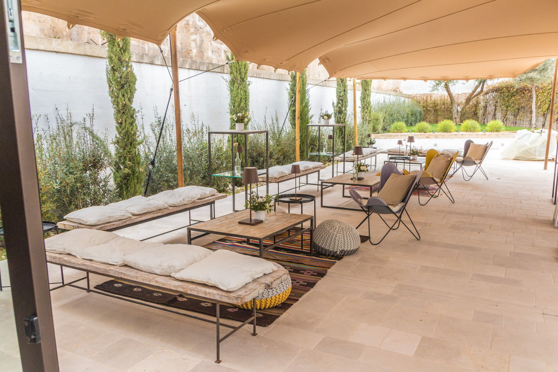 Inside the building, six refined rooms await visitors, with a distribution of two on the first floor and four on the ground floor, each of the four rooms accompanied by a private garden and a luxurious outdoor Jacuzzi. These resting spaces have been skilfully created from the old private stables, transforming into shelters of comfort and style.