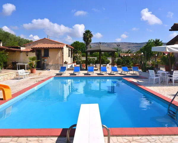 Die Villa umfasst 160 m² auf einer Ebene und bietet Platz für bis zu 6 Gäste in 3 Schlafzimmern und 2 Bädern. Das Hauptgebäude enthält zwei separate Wohn- und Essbereiche: einen mit Wintergarten und einen mit Kamin mit offenem Herd sowie Satelliten-Flachbildfernseher. Die Küche ist mit einem Ofen, einer Geschirrspülmaschine, 4 Gaskochfeldern, einem Toaster, einem Wasserkocher und einer elektrischen Kaffeemaschine ausgestattet. Das erste Schlafzimmer ist ein Doppelzimmer mit Klimaanlage, Ventilator und Zwangsluftheizung. Das zweite Schlafzimmer verfügt über 2 Einzelbetten sowie Klimaanlage und Zwangsluftheizung. Das dritte Schlafzimmer ist ein großzügiges Doppelzimmer von 40 m² mit eigenem Bad mit Dusche und WC, Klimaanlage, Ventilator, Zwangsluftheizung und direktem Zugang zum Garten; dieses Zimmer befindet sich in einem Nebengebäude. Ein gemeinsames Bad mit Dusche, Bidet und WC steht den übrigen Schlafzimmern zur Verfügung. Eine externe Küche mit 4 Brennern, einem Elektroofen und einem Pizzaofen ergänzt die Ausstattung.