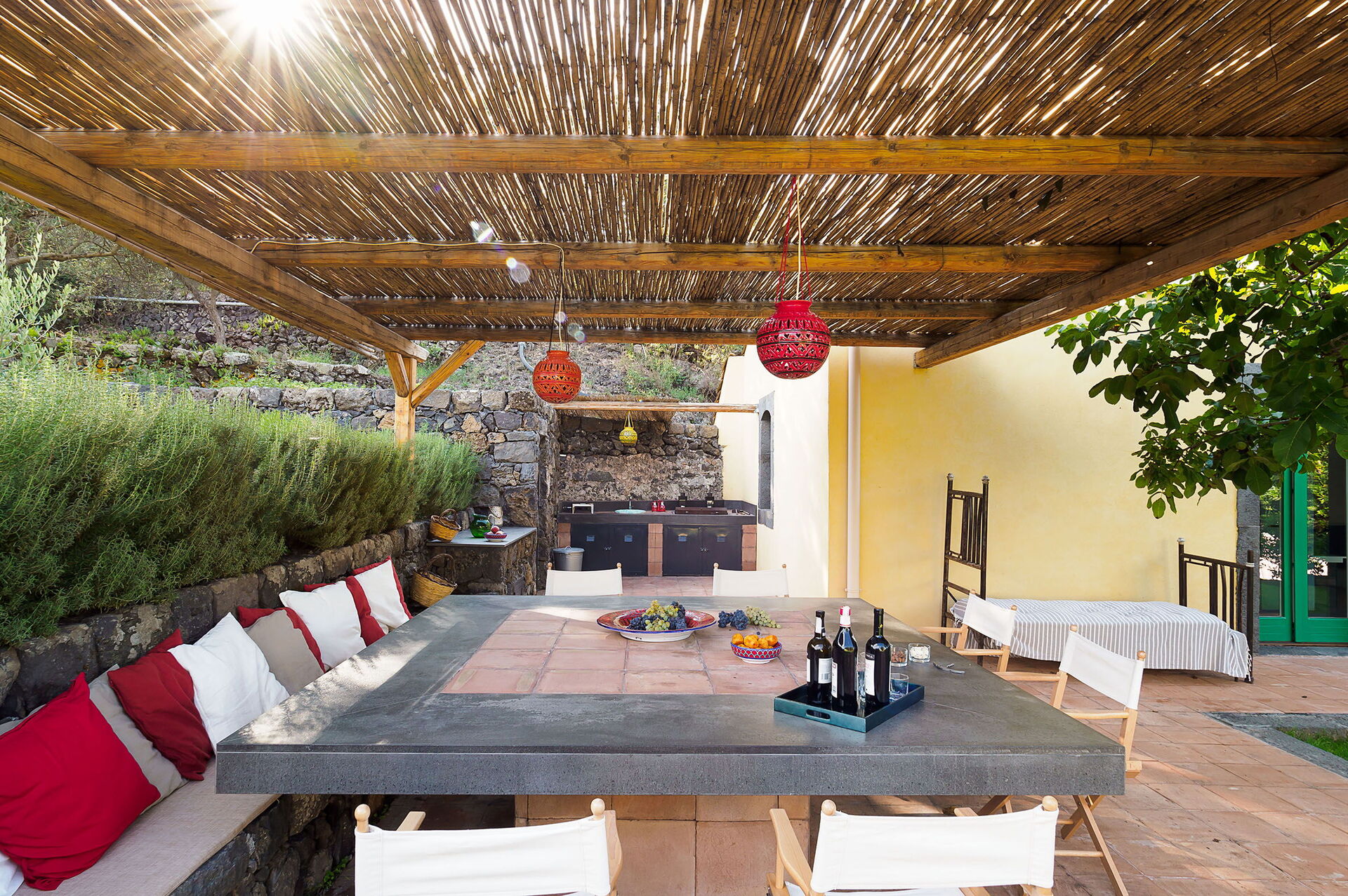 Nach Ankunft werden Sie eine reizende, saubere und gut gepflegte Unterkunft finden, mit Ausblick auf die Berge und der Hügel erstklassig für einen entspannenden Sizilien-Urlaub. Nach einem beschäftigten Tag, den Sie mit Museumsbesuchen verbracht haben, können Sie mit Familie und Freunden am Pool ein schönes, kühles Glas Wein genießen - einfach perfekt, um den Tag ganz erholt ausklingen zu lassen. Essen mit Freunden und Familie ist ein wichtiger Bestandteil der italienischen Kultur. Nutzen Sie die gut ausgestattete Küche, um Mahlzeiten aus lokalen Produkten vorzubereiten, während Sie im Urlaub sind. Die Küche kommt mit Kaffeemaschine, Toaster, Herd und Kühlschrank, sowie ausreichend Geschirr und Besteck für bis zu zehn Personen.
