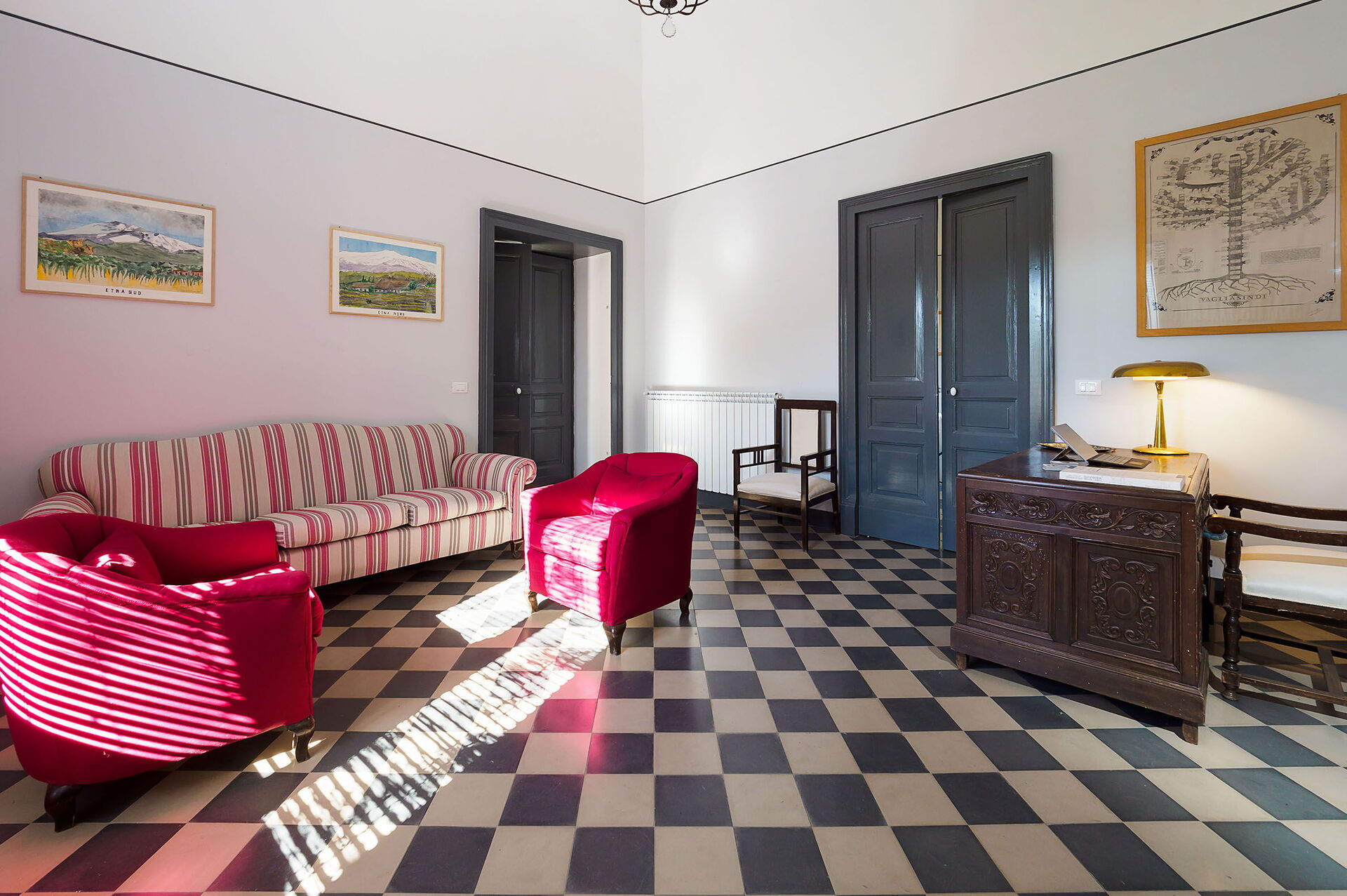 Wohnzimmer: Sofa (Personen: 4), drei Sessel, Schreibtisch, WiFi Internet, Internet, Ausgang auf die Terrasse.