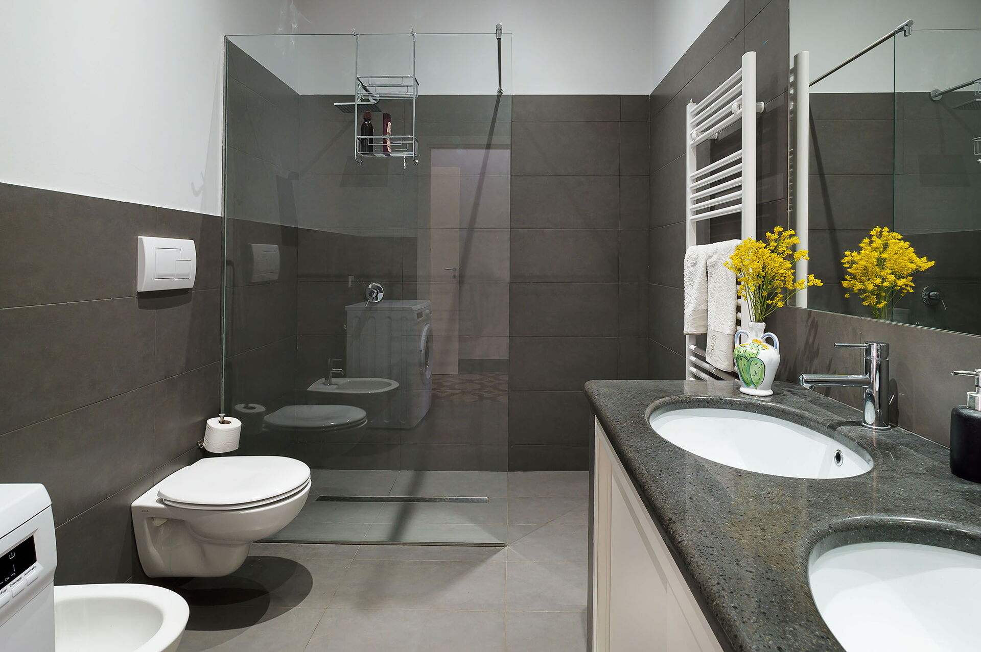 Badezimmer: Doppelwaschbecken, WC, Bidet, Dusche, WiFi Internet, Internet.
