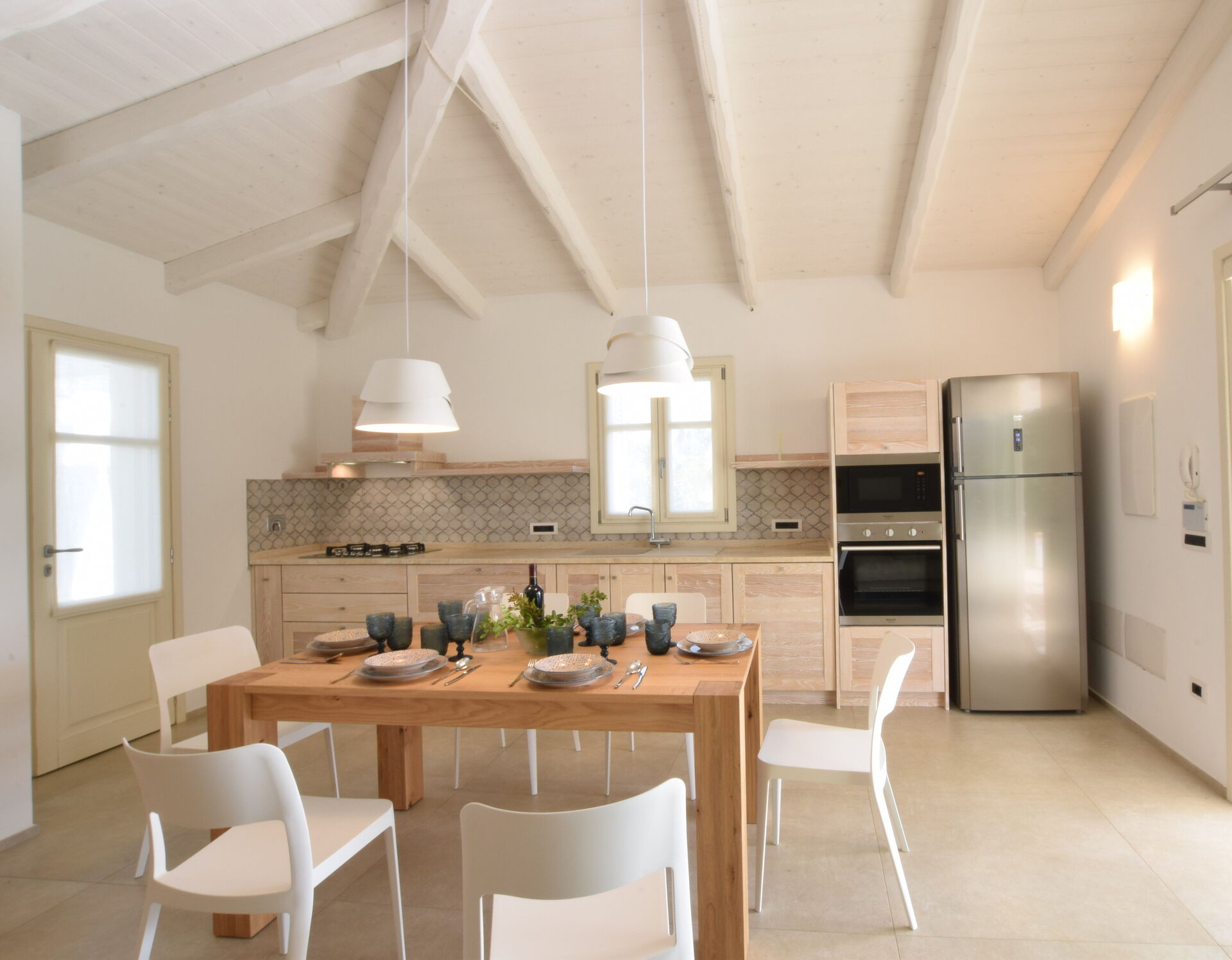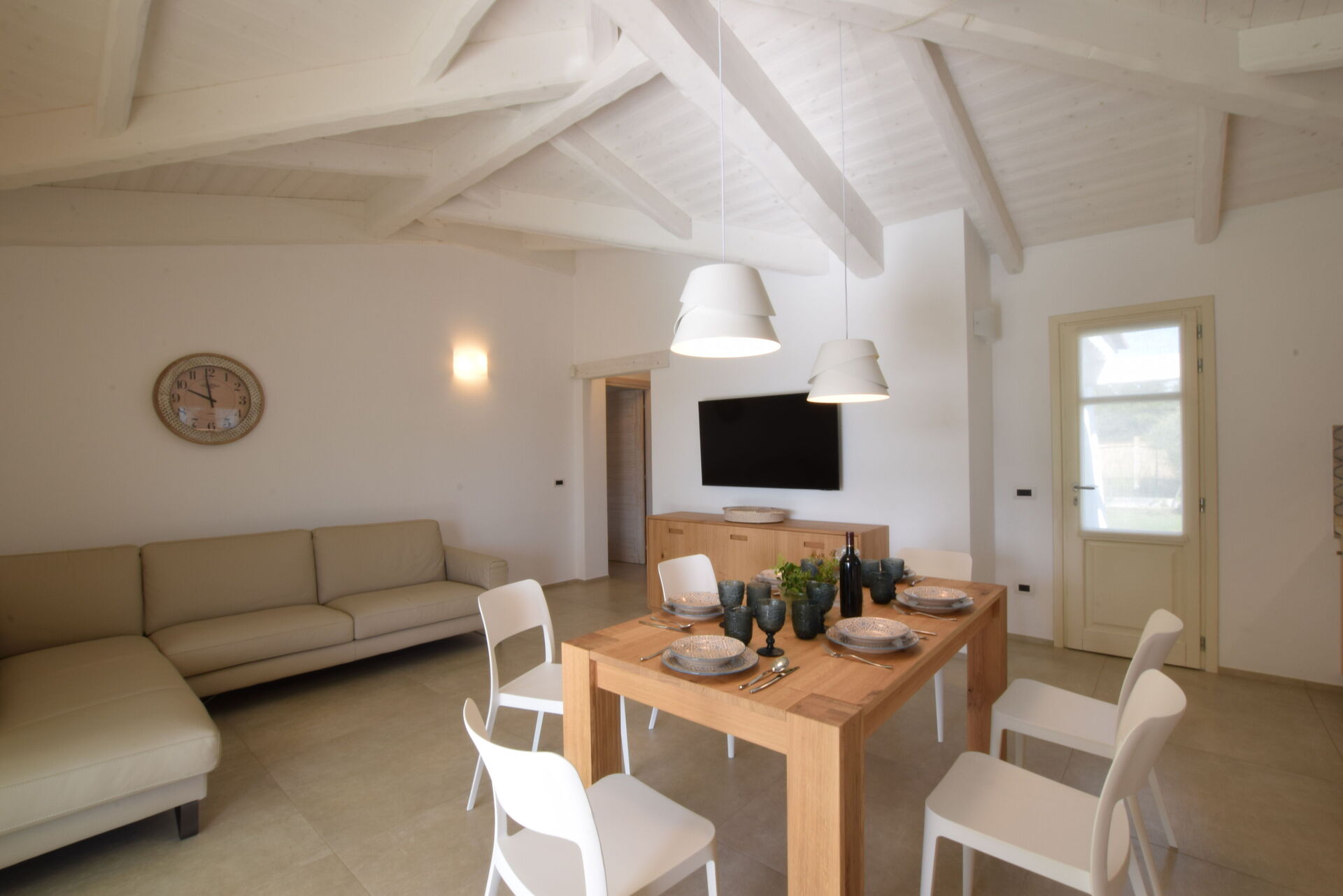 Wohnküche: gut ausgestattete Küche, Esstisch, Spülmaschine, Kühlschrank, Tiefkühler, Mikrowelle, Ofen, Italienische Kaffeemaschine, Sofa, WiFi Internet, Klimaanlage, TV, Ausgang auf den Garten.