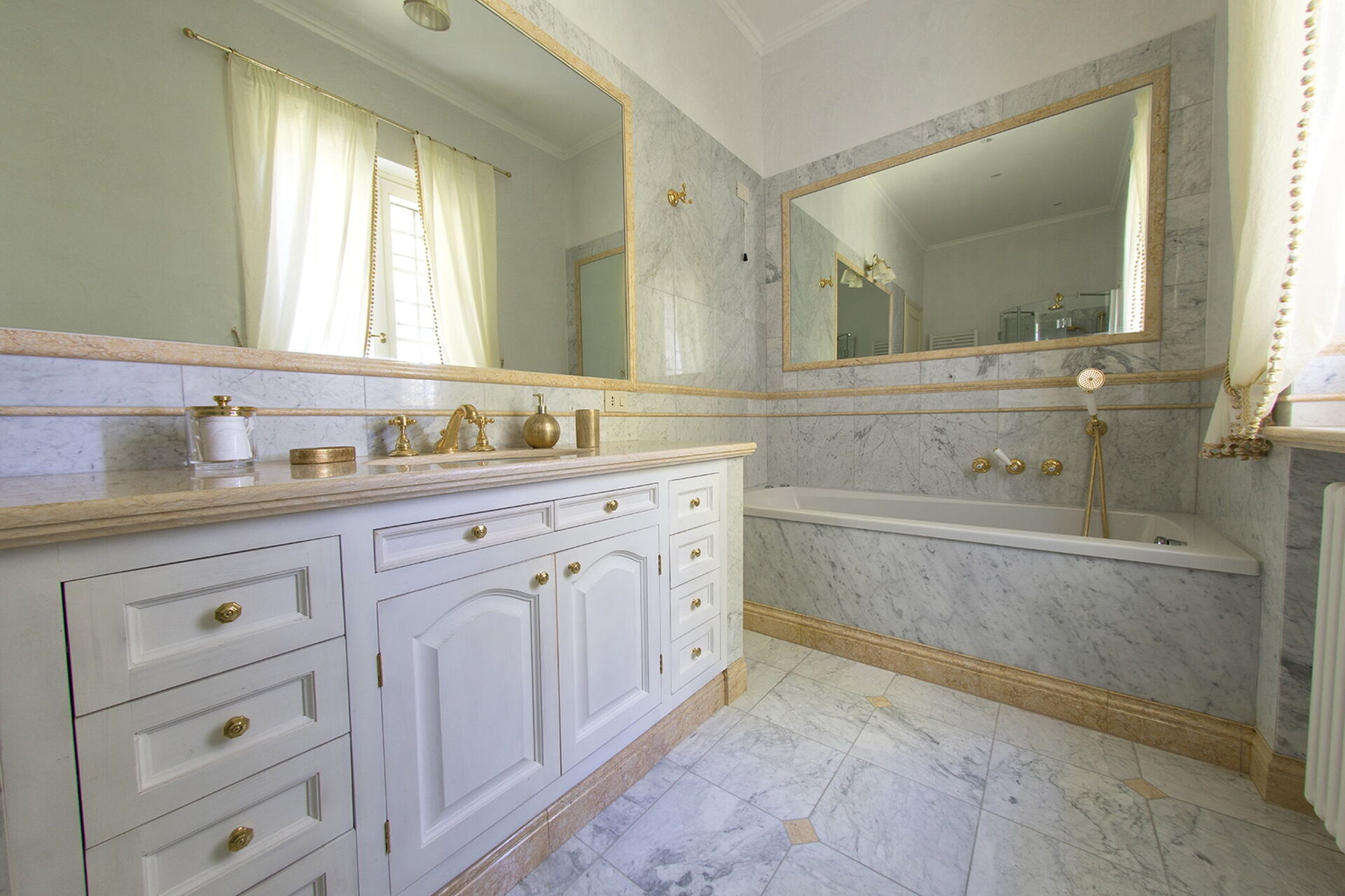 Schlafzimmer mit Bad 2: Doppelbett, WiFi Internet, Klimaanlage, Fliegengitter, Whirlpool-Badewanne, WC, Bidet, Dusche, Fön, Ausgang auf den Balkon.