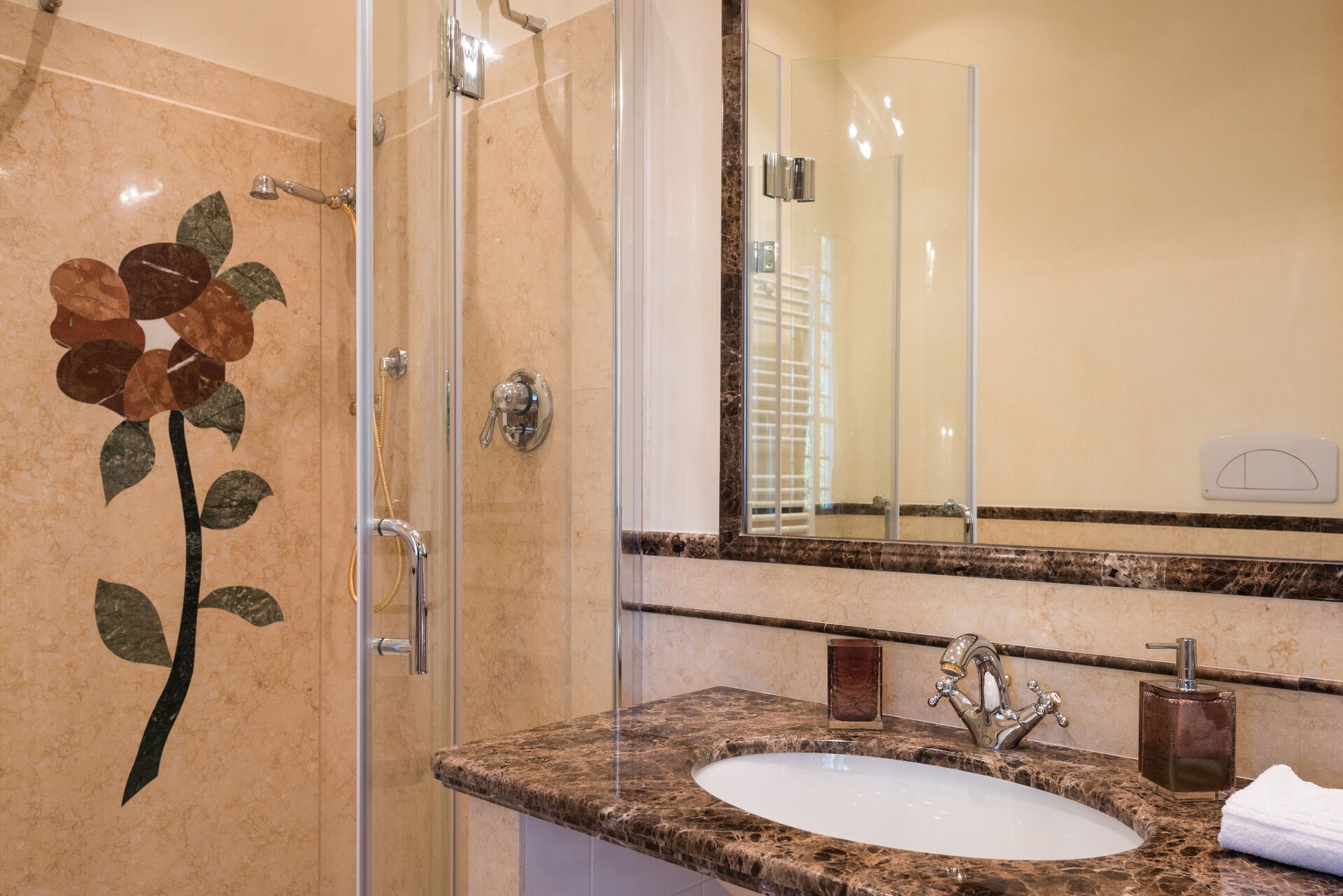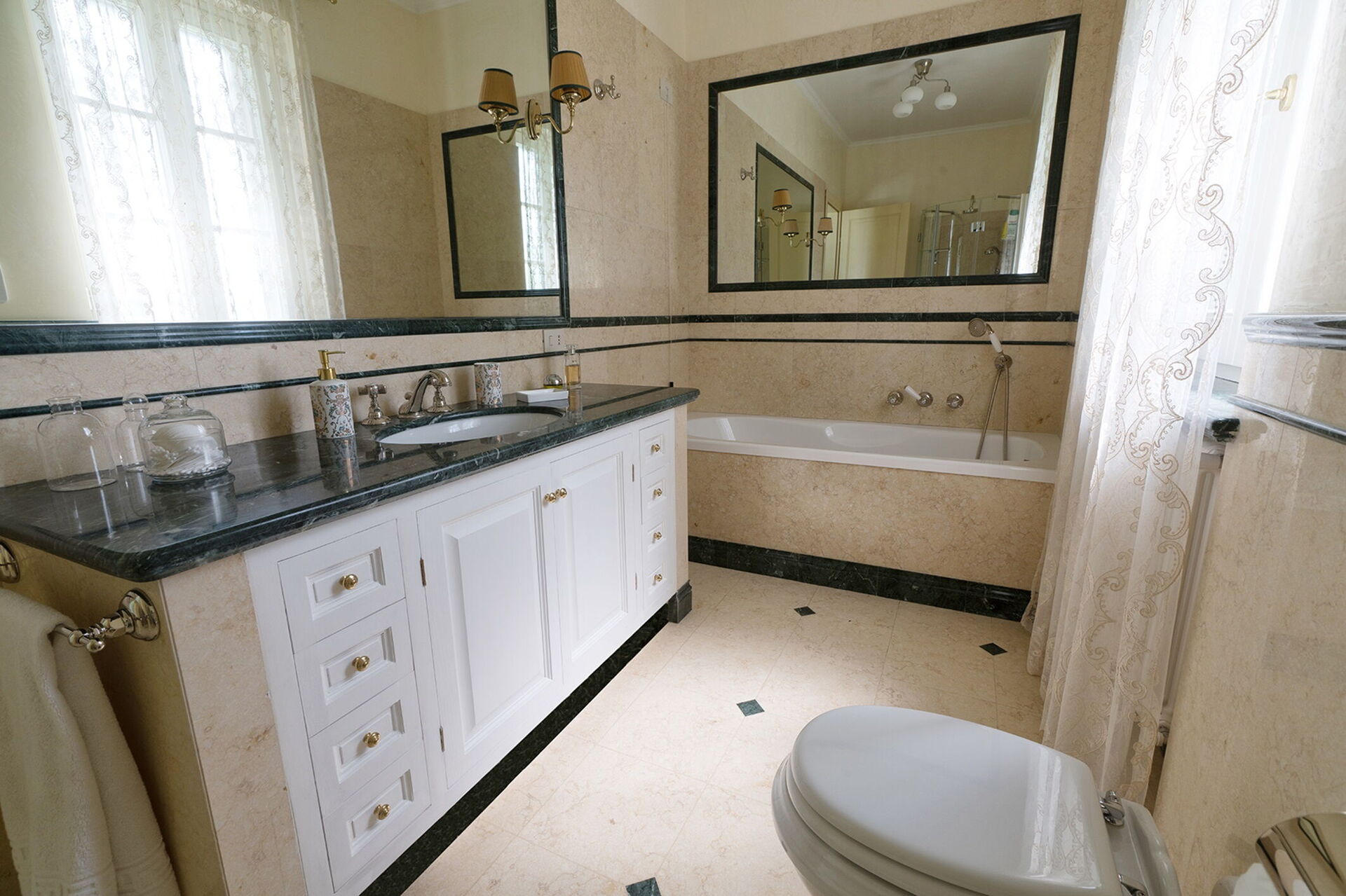 Schlafzimmer mit Bad 3: WiFi Internet, Klimaanlage, Fliegengitter, Waschbecken, WC, Bidet, Dusche, Fön.
