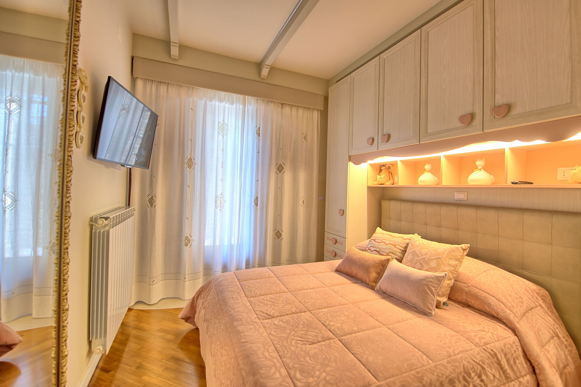 Untergeschoss (sowohl von innen als auch von außen zugänglich): großes Wohnzimmer mit Kamin (Klimaanlage, Parkett), Essbereich mit Zugang zum Außenhof, Küche (Backofen, Kühlschrank, Gefrierschrank, Mikrowelle, Geschirrspüler, Espressomaschine, Toaster) Schlafzimmer mit Doppelbett (Klimaanlage) und Zugang zu einer kleinen Treppe, die zum Gartenbereich führt, Badezimmer mit Dusche und Hydromassage-Badewanne.