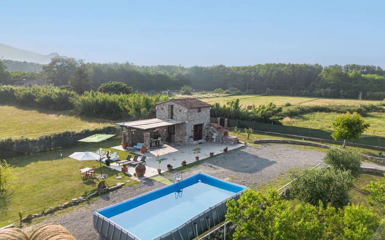 Rustikales Haus "I Sei Filari", Baujahr 2022. 1.5 km vom Zentrum von Castelvecchio di Compito, 17 km vom Zentrum von Lucca, 28 km vom Zentrum von Pisa, 40 km vom Meer. Zur Alleinbenutzung: Grundstück 1'000 m2 (eingezäunt), Garten 500 m2 (eingezäunt) mit Pflanzen, Wiese, Aufstellpool (6 x 8 m, 110 - 110 cm tief, saisonale Verfügbarkeit: 04.Mai. - 04.Okt.). Aussendusche, Terrasse (150 m2), Gartenmöbel. Im Hause: Sauna (extra). Sprudelbad (extra). Ruheraum, Wellnessbereich (extra). Koch möglich (extra). 950 m lange Zufahrt (Naturweg). Parkplatz auf dem Grundstück. Einkaufsgeschäft 1.4 km, Supermarkt 6 km, Bushaltestelle 800 m, Sandstrand 40 km. Nahe gelegene Sehenswürdigkeiten: Collodi (Pinocchio Park) 23 km, Montecatini Terme 27 km, San Giuliano Terme 23 km, Firenze 70 km, Viareggio 41 km, Riomaggiore (5 Terre) 101 km. Bekannte Seen in der Umgebung sind gut erreichbar: Lago di Massaciuccoli 41 km, Torre del Lago 43 km. Wandergebiete: Levigliani Antro del Corchia Park 67 km. Bitte beachten: Fahrzeug empfohlen. Im Untergeschoss mit separatem Außeneingang über eine Treppe großen SPA von 200 qm (gegen Gebühr) mit Schwimmbad mit Gegenstromschwimmen mit Hydromassage, Sauna und Ruheraum mit Chromotherapie und Kamin. Passage von oben in völliger Privatsphäre Flaschen und Abendessen (gegen Aufpreis).