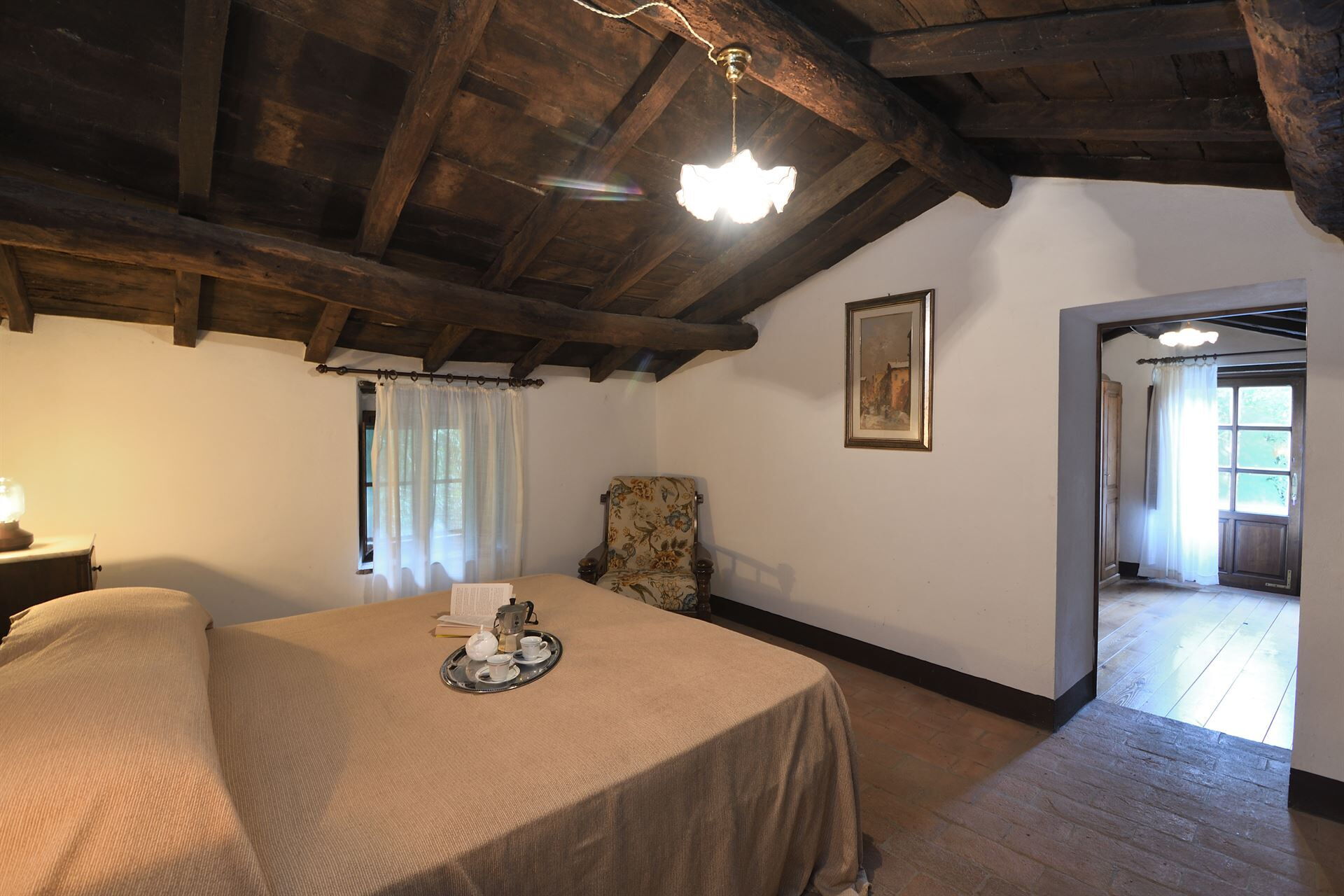 Bei Ankunft werden Sie eine schöne, saubere und gut gepflegte Unterkunft finden, mit Ausblick auf die Hügellandschaft ideal für einen erholsamen Toskana-Urlaub. Nach einem ereignisreichen Tag, den Sie mit Museumsbesuchen verbracht haben, können Sie mit Familie und Freunden am Pool ein schönes, kühles Glas Wein genießen - einfach perfekt, um den Tag ganz erholt ausklingen zu lassen. Speisen mit Freunden und Familie ist ein wichtiger Bestandteil der toskanischen Kultur. Nutzen Sie die Küche, um Mahlzeiten aus lokalen Produkten vorzubereiten, während Sie im Urlaub sind. Die Küche kommt mit Kaffeemaschine, Mikrowelle, Toaster und Kühlschrank, sowie ausreichend Geschirr und Besteck für bis zu sechs Personen. Speisen Sie 'al Fresco' wie ein echter Toskaner - der Garten ist eine ideale Kulisse, um das Essen, die Familie und das hübsche toskanische Wetter zu genießen.