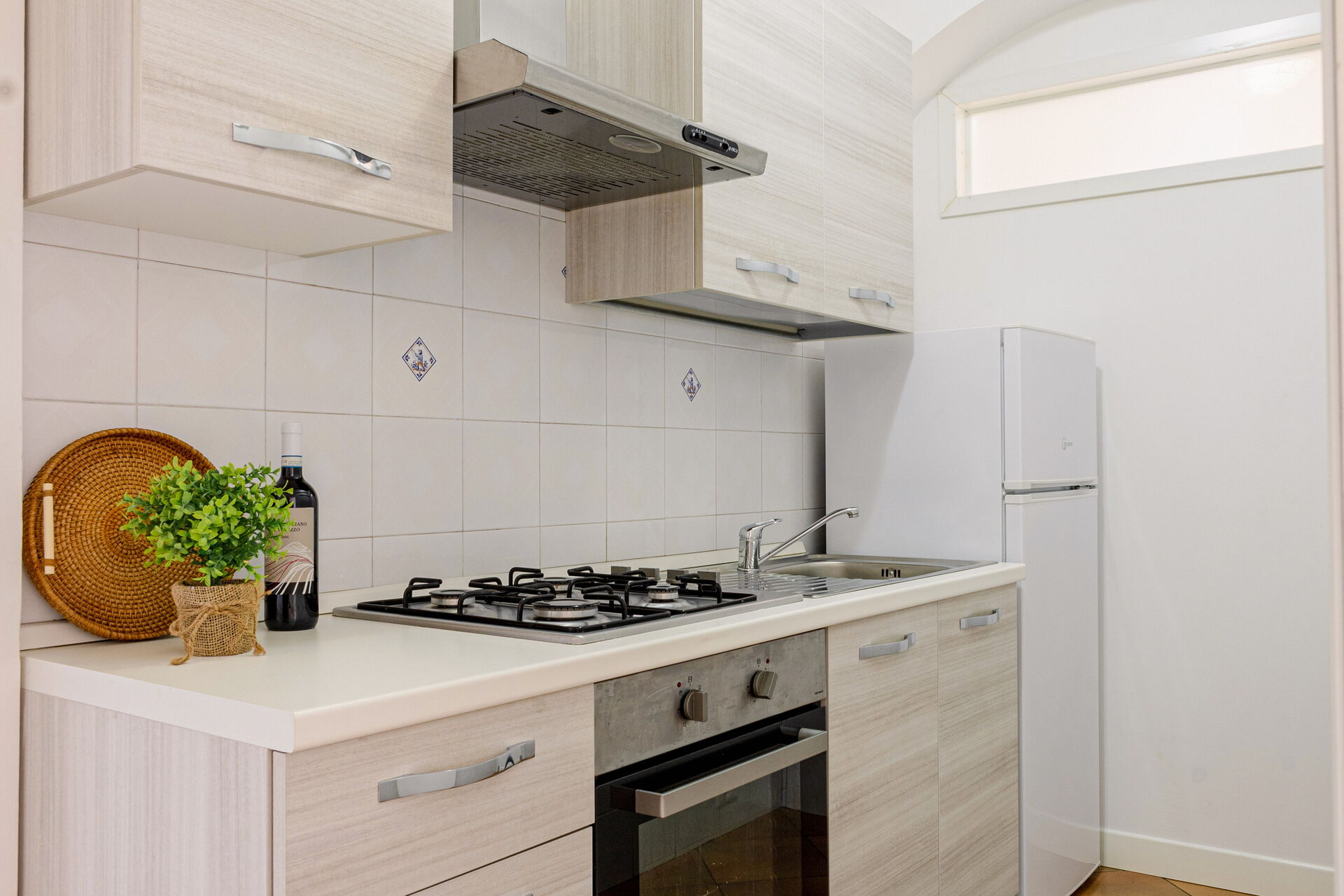 Wohnküche: gut ausgestattete Küche, Kühlschrank, Tiefkühler, Ofen, Doppel-Schlafsofa, WiFi Internet, Klimaanlage, Ausgang auf den Garten. Schlafzimmer mit Bad: Doppelbett, WiFi Internet, Klimaanlage, Waschbecken, WC, Bidet, Fön.