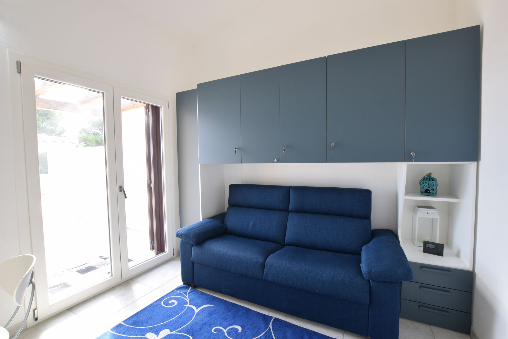 Wohnküche: Esstisch, Spülmaschine, Kühlschrank, Tiefkühler, Mikrowelle, Herd, Ofen, Italienische Kaffeemaschine, Doppel-Schlafsofa, WiFi Internet, Klimaanlage, Fliegengitter, TV.