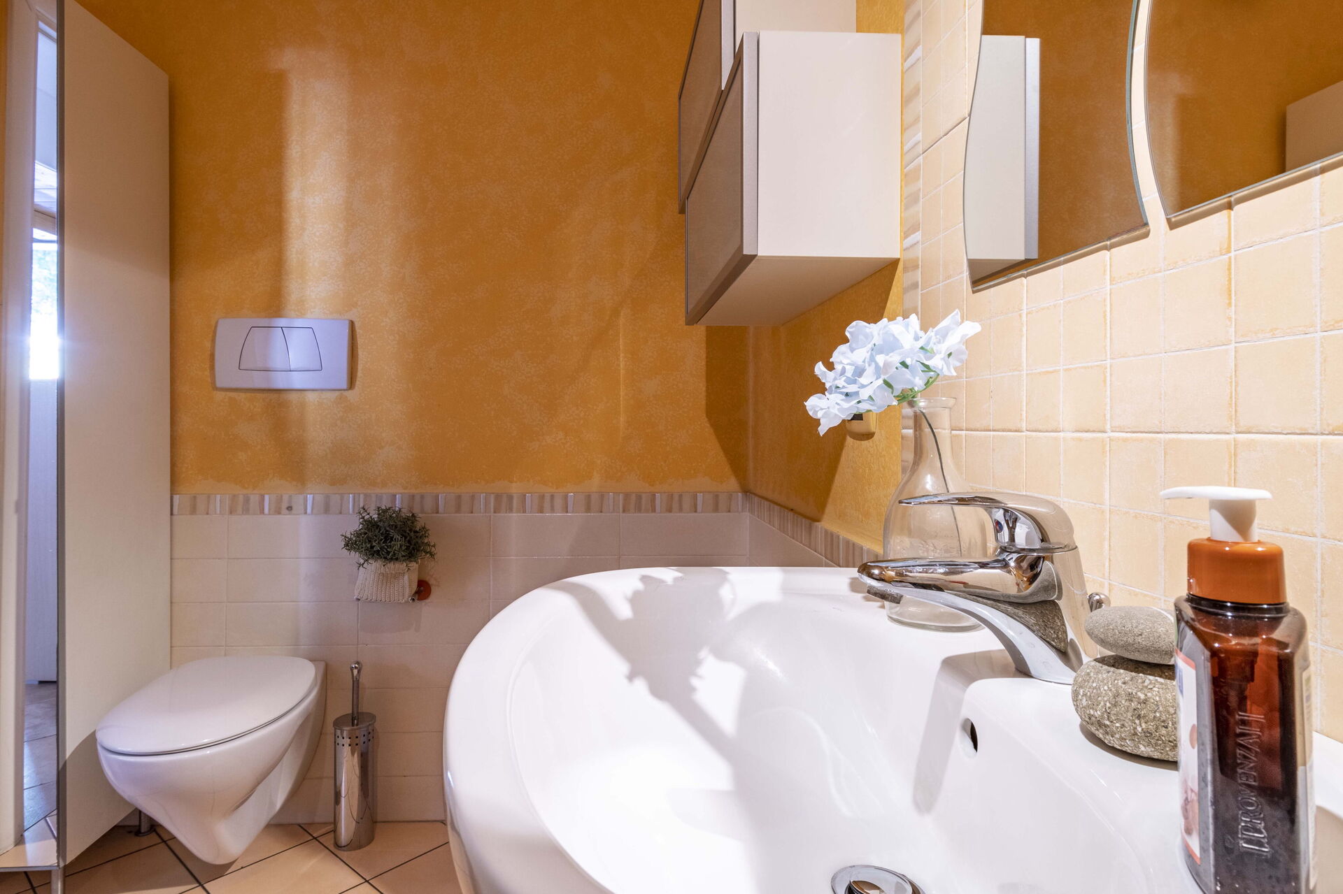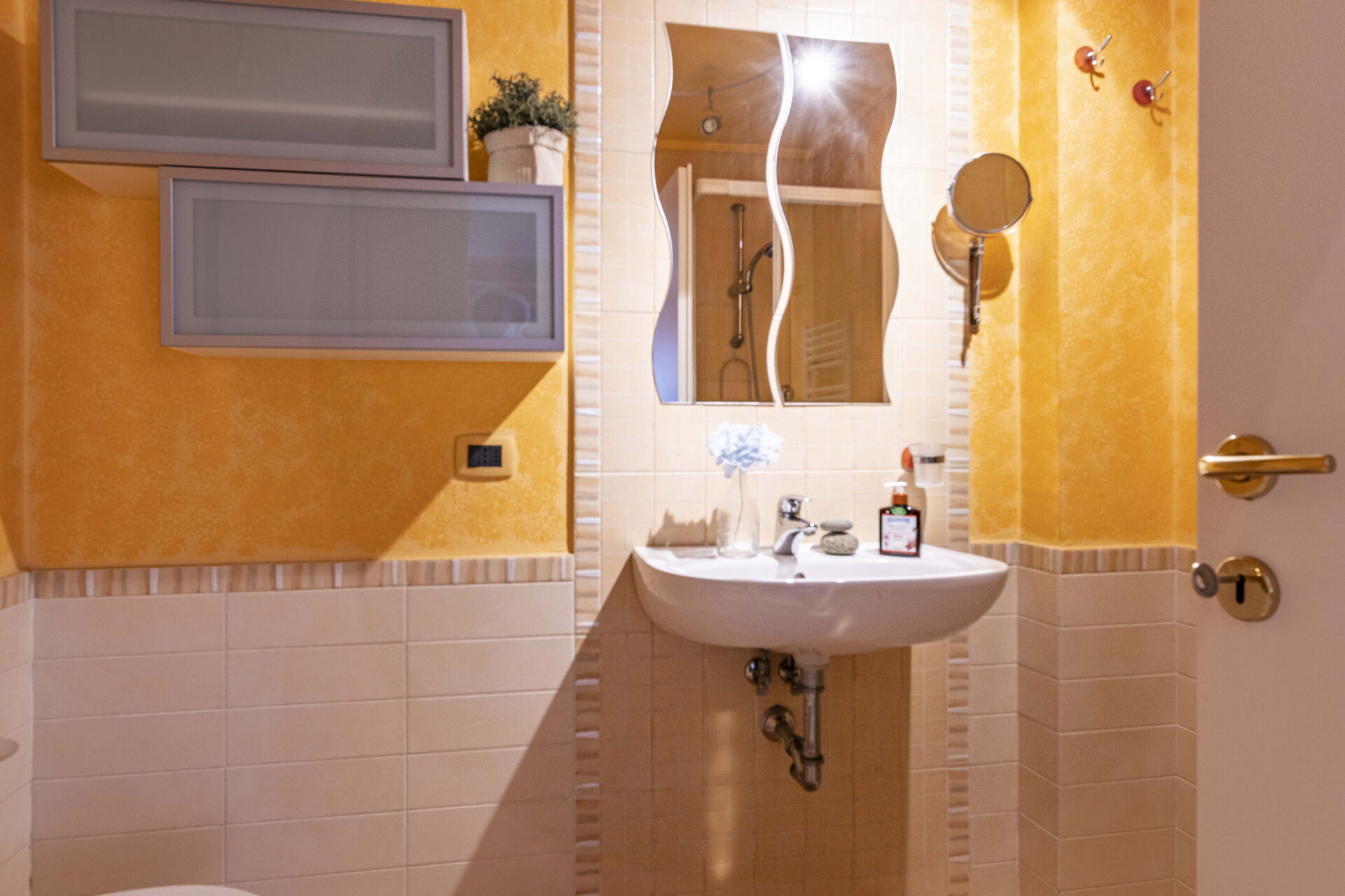 Badezimmer: Waschbecken, WC, Bidet, Dusche, WiFi Internet.