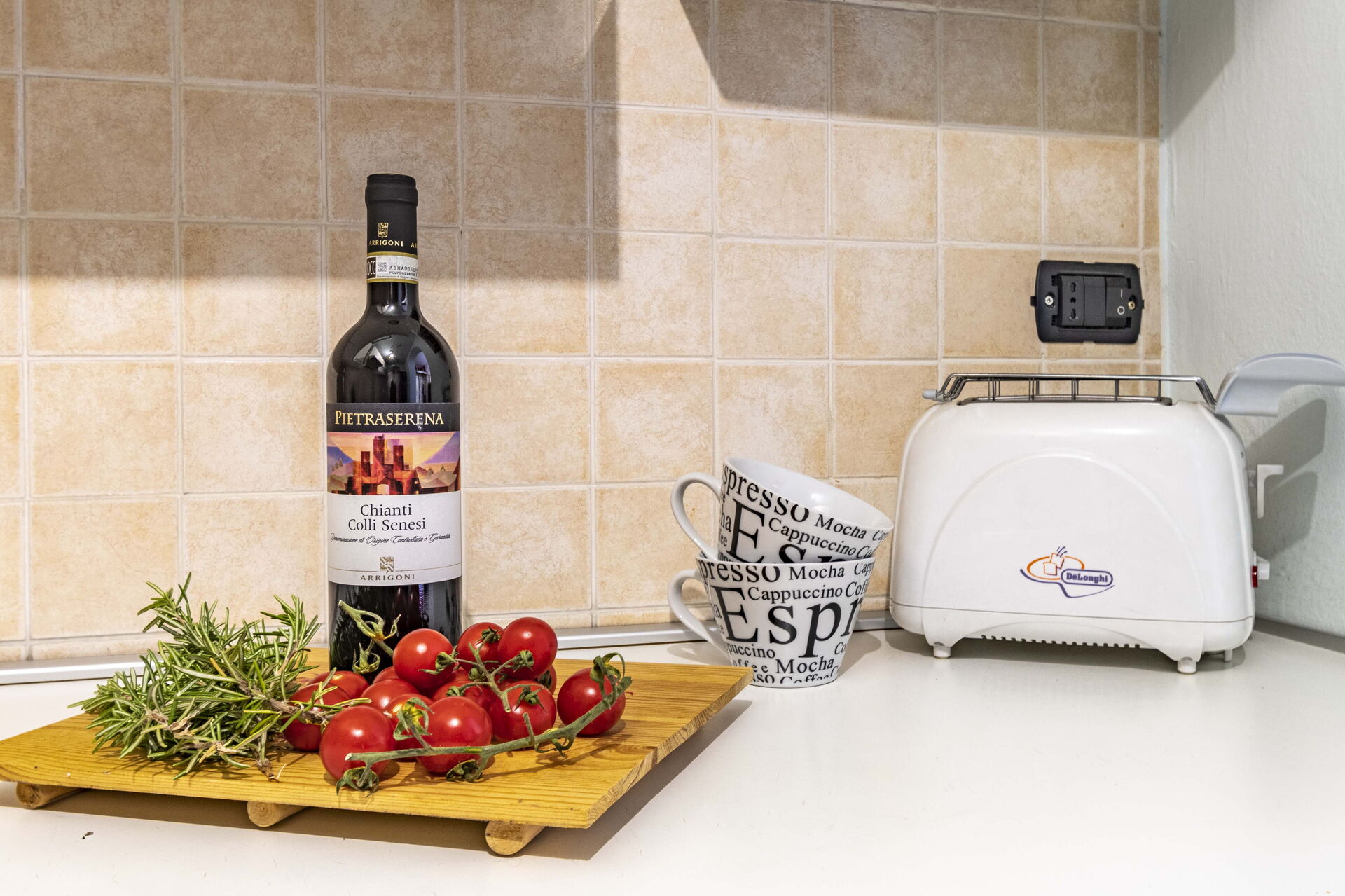 Nach Ankunft werden Sie von dem Besitzer oder Manager begrüßt, der Ihnen die schöne, saubere und gut gepflegte Unterkunft zeigt, perfekt für einen entspannenden Toskana-Urlaub. Ein echter Vorteil einer privaten Ferienunterkunft, im Gegensatz zu mehreren Hotelzimmern, ist, dass Sie nach einem anstrengenden Tag, den Sie mit Sightseeing verbracht haben, gemeinsam mit Freunden und Familie entspannen können. Essen Sie zusammen und genießen Sie den lokalen Wein, um den Tag ausklingen zu lassen. Wenn Sie gerne für Familie und Freunde kochen, werden Sie sich über die gut ausgestattete Küche freuen mit Kaffeemaschine, Mikrowelle, Toaster, Herd und Kühlschrank, sowie ausreichend Geschirr und Besteck für bis zu vier Personen.