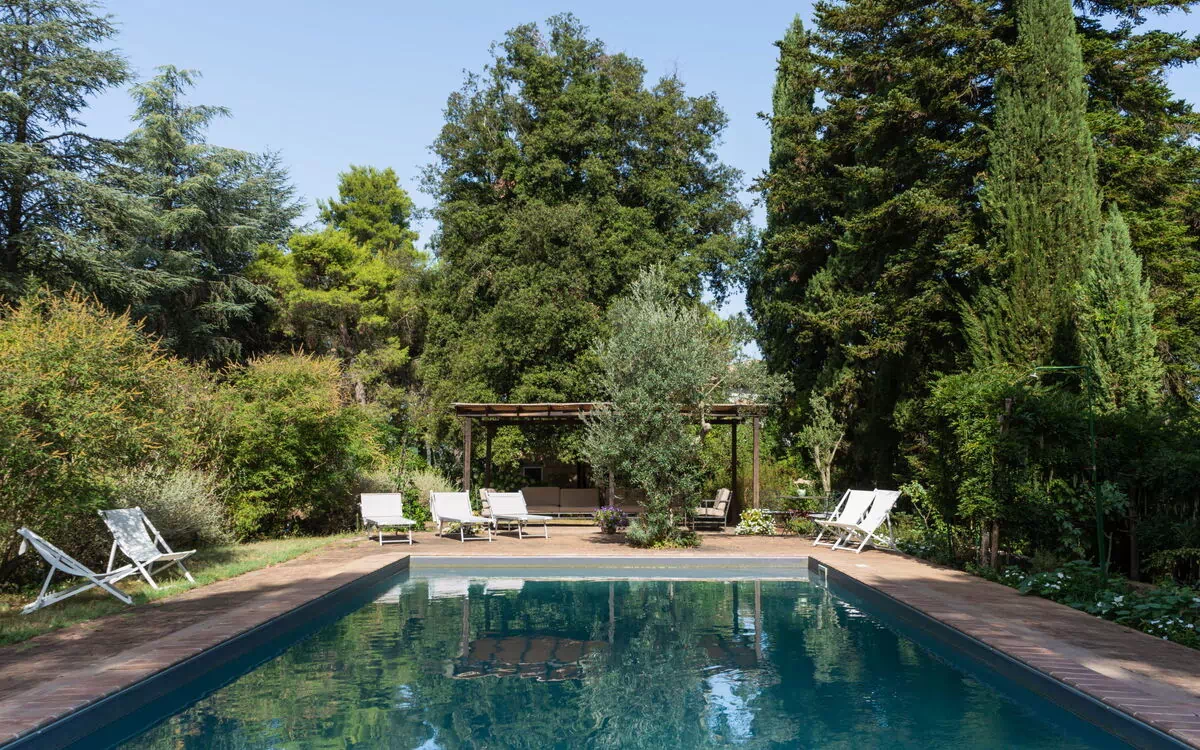 Grosse, freistehende, historische Villa "Il Giardino Di Eugenia", 480 m.ü.M.. 10 km vom Zentrum von Orvieto, 6 km vom Zentrum von Castl Giorgio, alleinstehende Lage auf einem Hügel, 21 km vom See. Zur Mitbenutzung: Schwimmbad (12 x 6 m, 150 cm tief, saisonale Verfügbarkeit: 15.Mai. - 15.Okt.). Zur Alleinbenutzung: grosser, schöner, gepflegter Garten 1 ha (eingezäunt). Holprige Zufahrt bis 2 km zum Haus. Parkplatz auf dem Grundstück. Nahe gelegene Sehenswürdigkeiten: Castel Viscardo 9 km, Bolsena 17 km, Acquapndente 19 m, Civita Di Bango Regio 20 km, Montefiascone 30 km, Todi 43 km. Der Besitzer akzeptiert keine Jugendgruppen.