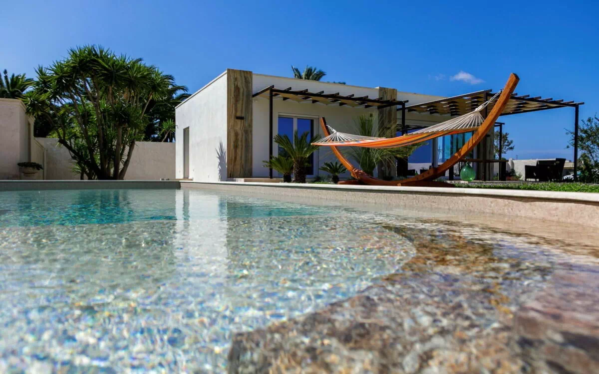 Moderne, luxuriöse Villa "Incoronata New Dependance", Baujahr 2024, umgeben von Bäumen und Feldern. 1 km vom Zentrum von Nardò-Città del Barocco Leccese, 15 km vom Zentrum von Gallipoli, 24 km vom Zentrum von Lecce, ruhige, sonnige Lage, 3 km vom Meer, 3 km vom Strand, im Grünen. Zur Alleinbenutzung: Grundstück (eingezäunt), grosser, schöner, gepflegter Garten 1'200 m2 (eingezäunt) mit Blumen und Bäumen, Liegewiese, Schwimmbad nicht einsehbar (4 x 10 m, 50 - 140 cm tief, saisonale Verfügbarkeit: 01.Apr. - 30.Okt.). WC im Poolbereich, Aussendusche, Pergola, Gartenmöbel, Grill, Poolpflege durch den Besitzer/Gärtner. Im Hause: Alarmanlage. Wäschewechsel (zusätzlich extra). Handtuchwechsel (zusätzlich extra). Parkplatz beim Haus. Lebensmittelgeschäft, Supermarkt 700 m, Restaurant 3 km, Bar 3 km, Bäckerei 3 km, Bushaltestelle 700 m, Bahnstation "Nardò" 3 km, Sandstrand "Santa Caterina" 3 km, Felsstrand "Porto Selvaggio" 3 km. Tennis, Sportzentrum 350 m. Nahe gelegene Sehenswürdigkeiten: Melpignano - Città della Taranta 40 km, Otranto 60 km, Santa Maria di Leuca-Punta Sud Puglia 60 km, Alberobello 143 km, Polignano a Mare 149 km, Matera 162 km. Wandergebiete: Parco Naturale Porto Selvaggio 25 km, Parco Naturale Terra delle Gravine 119 km, Grotte carsiche di Castellana 155 km. Bitte beachten: Fahrzeug empfohlen. Ferienwohnung Ref. IT6770.810.1 befindet sich auf dem gleichen Grundstück.