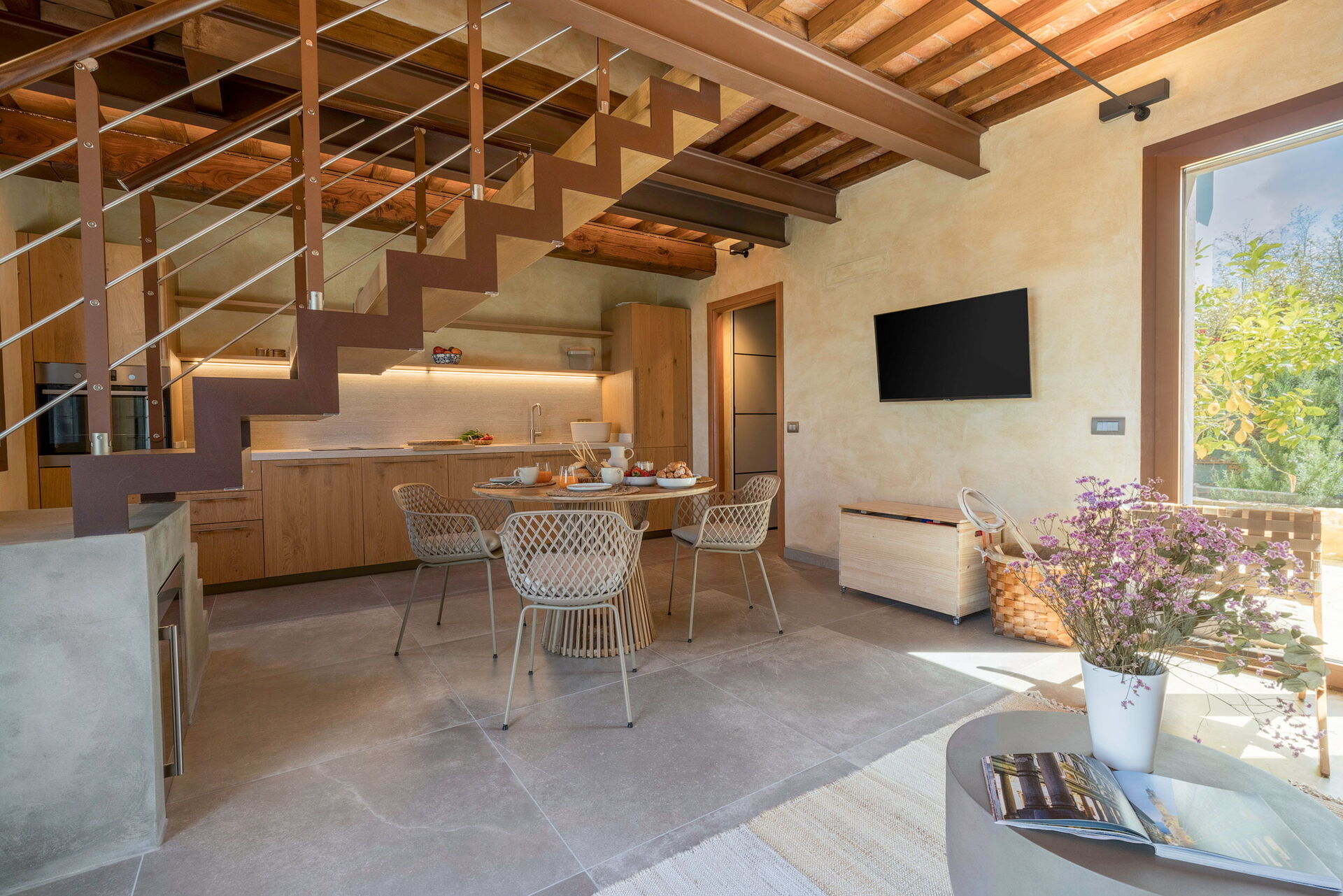 Wohnküche: gut ausgestattete Küche, Esstisch, Spülmaschine, Kühlschrank, Tiefkühler, Mikrowelle, Ofen, Italienische Kaffeemaschine, Sofa, WiFi Internet, Klimaanlage, TV, Rauchmelder, Ausgang auf den Garten.