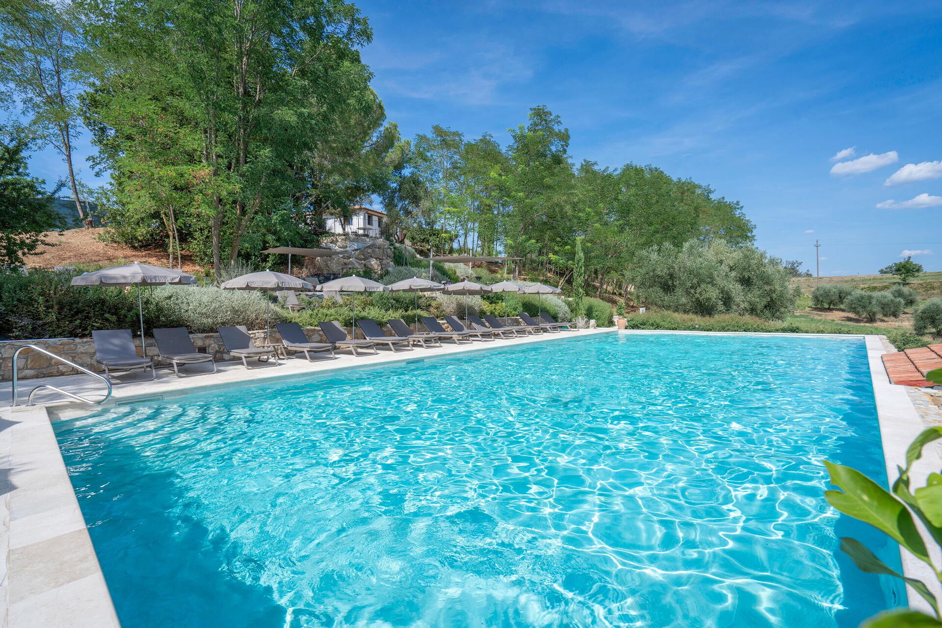 Der Pool ist von Mai bis Oktober beheizt und wird ausschließlich von den zehn Appartements und drei Villen genutzt.