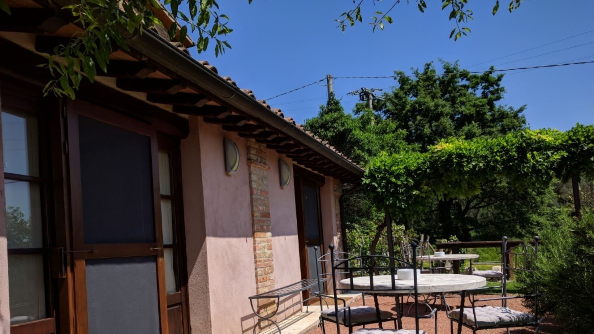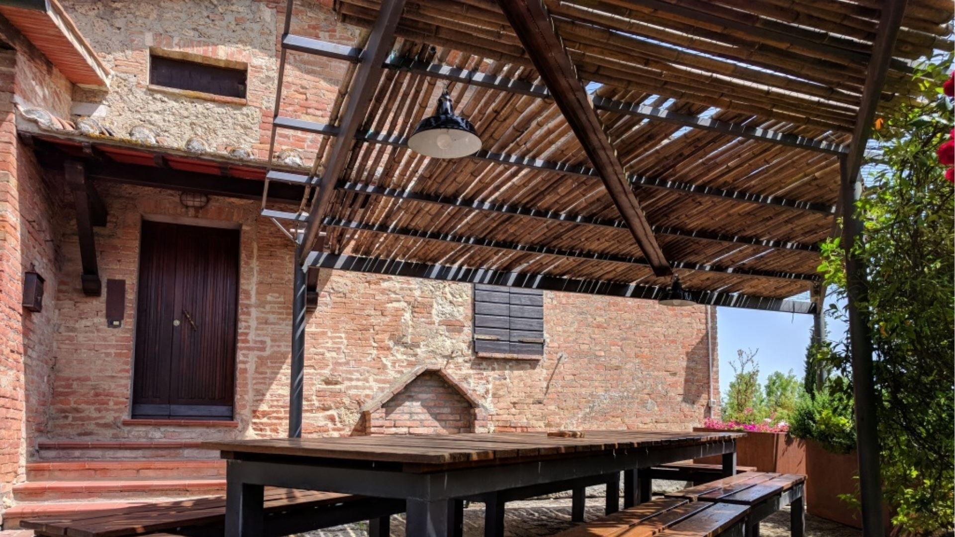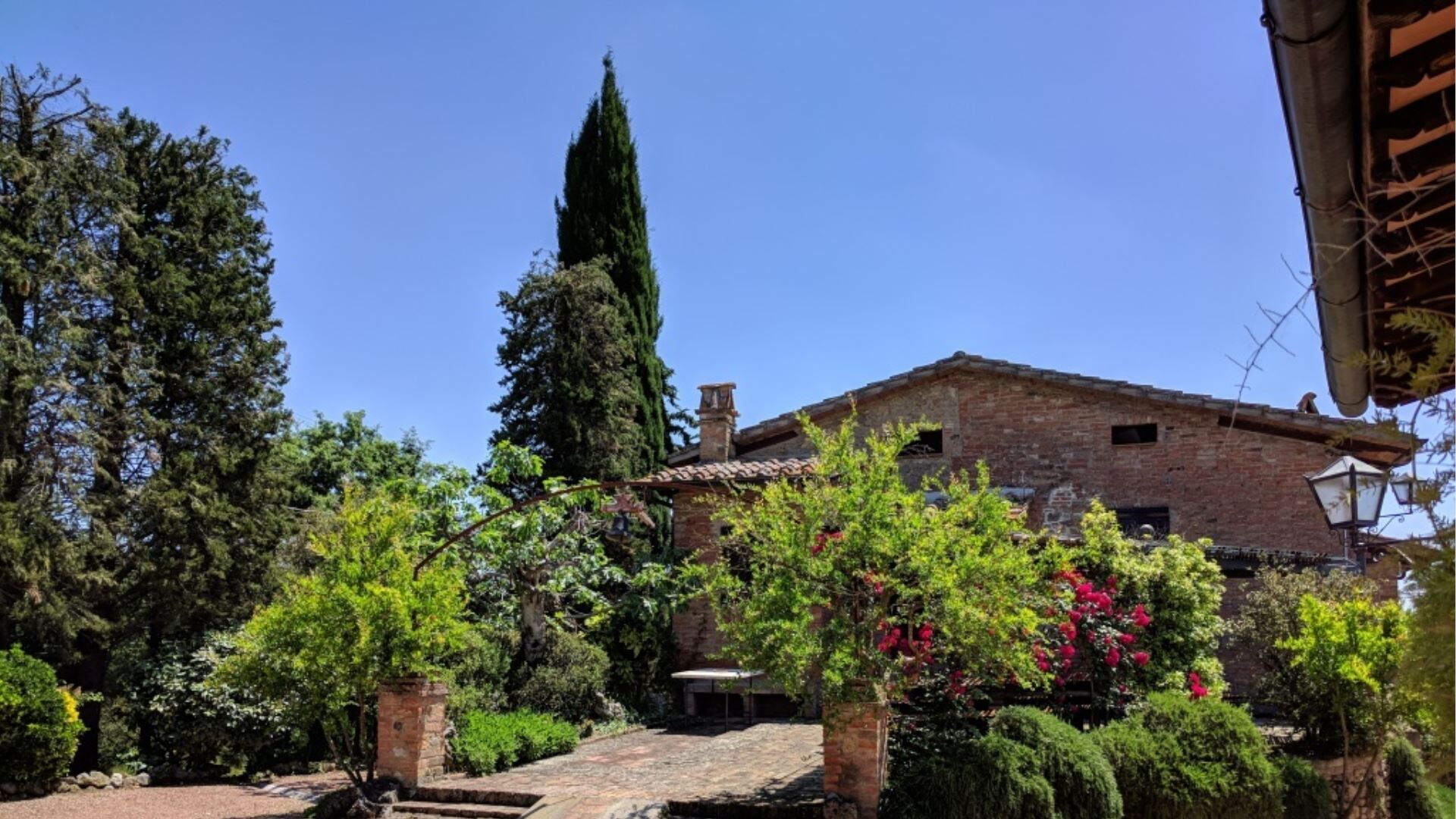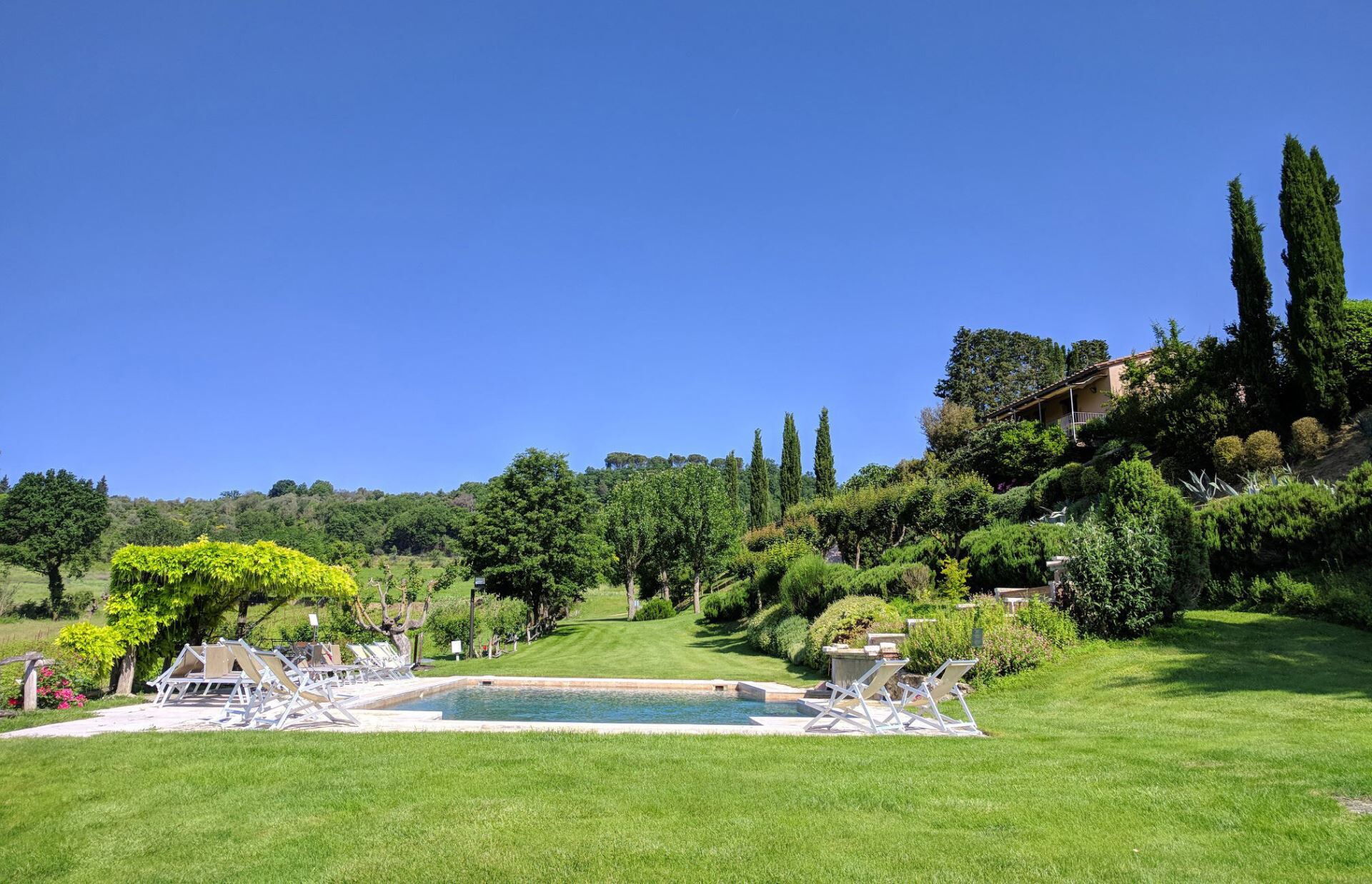Die Außenbereiche von Podere della Bruciata sind darauf ausgelegt, Ihren Genuss der atemberaubenden toskanischen Landschaft zu maximieren. Das Herzstück ist ein großzügiger Swimmingpool mit den Maßen 7 mal 14 Meter und einer Tiefe von 1 bis 1,50 Meter, der durch einen kaskadierenden Wasserfall wunderschön aufgewertet wird und eine beruhigende Atmosphäre schafft. Der Pool ist von gepflegten Grünflächen umgeben, die sich perfekt zum Sonnenbaden und zur Entspannung im Freien eignen. Sie finden eine geräumige Veranda mit einem Pavillon und Tischen vor, die schattige Bereiche für Mahlzeiten im Freien bietet, während Sie den Panoramablick über die umliegenden Hügel genießen. Eine Grillmöglichkeit steht Ihnen für kulinarische Freuden im Freien zur Verfügung und ermöglicht es Ihnen, köstliche Mahlzeiten unter freiem Himmel zuzubereiten. Der Scheunenteil des Anwesens verfügt über eine eigene Veranda mit direktem Blick auf den Poolbereich, während das Hauptgebäude eine charmante Gartenecke mit Ausblick auf Chiusi bietet. Der Swimmingpool ist vom 15. April bis zum 15. Oktober geöffnet und gewährleistet somit die Verfügbarkeit während der wärmeren Monate.