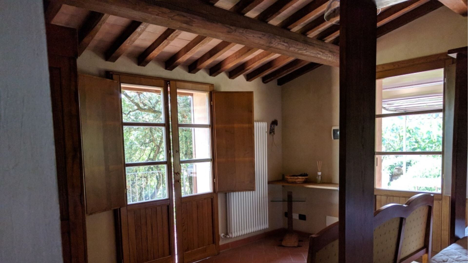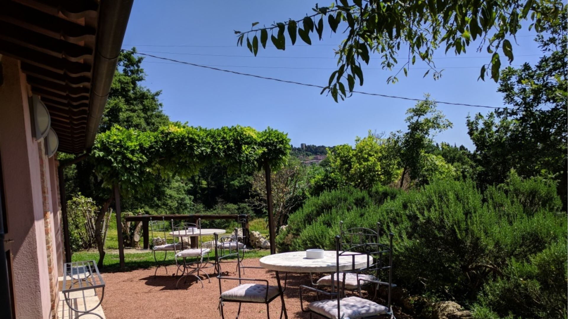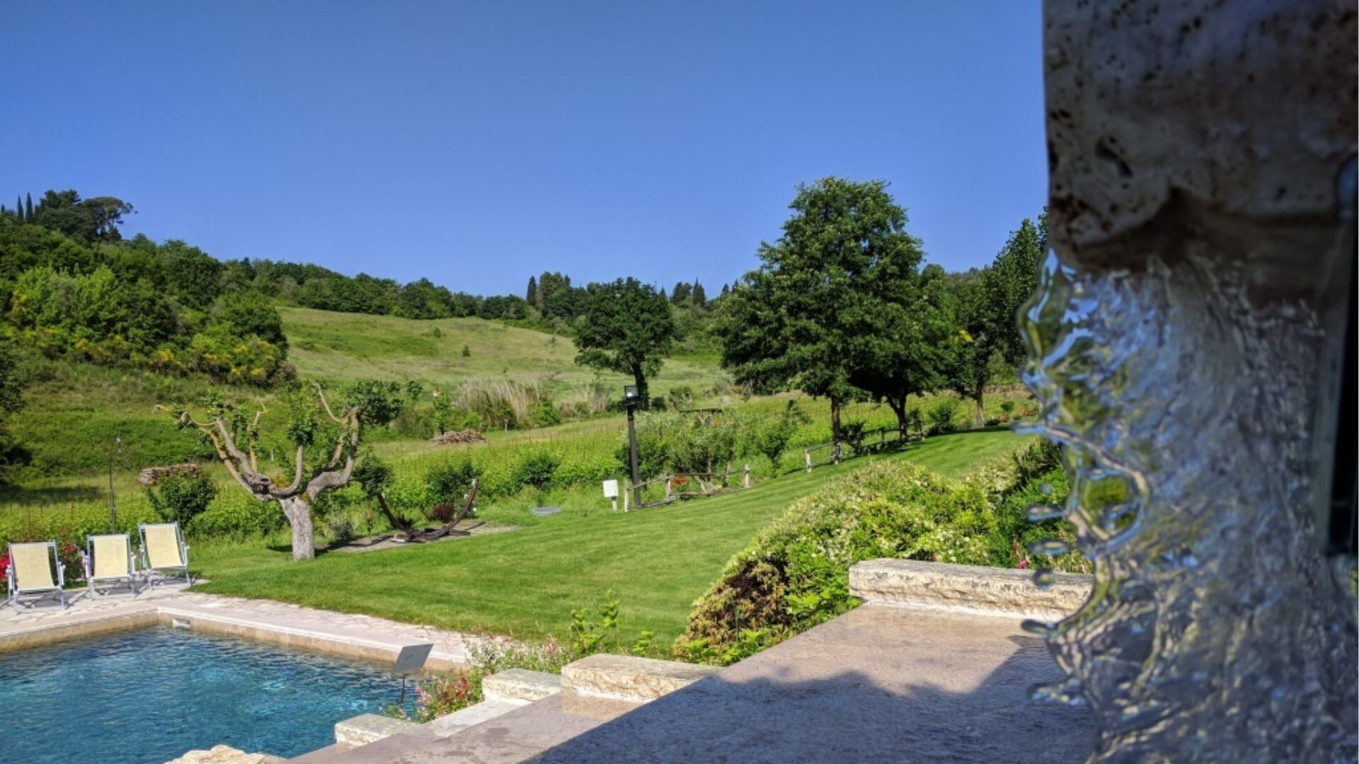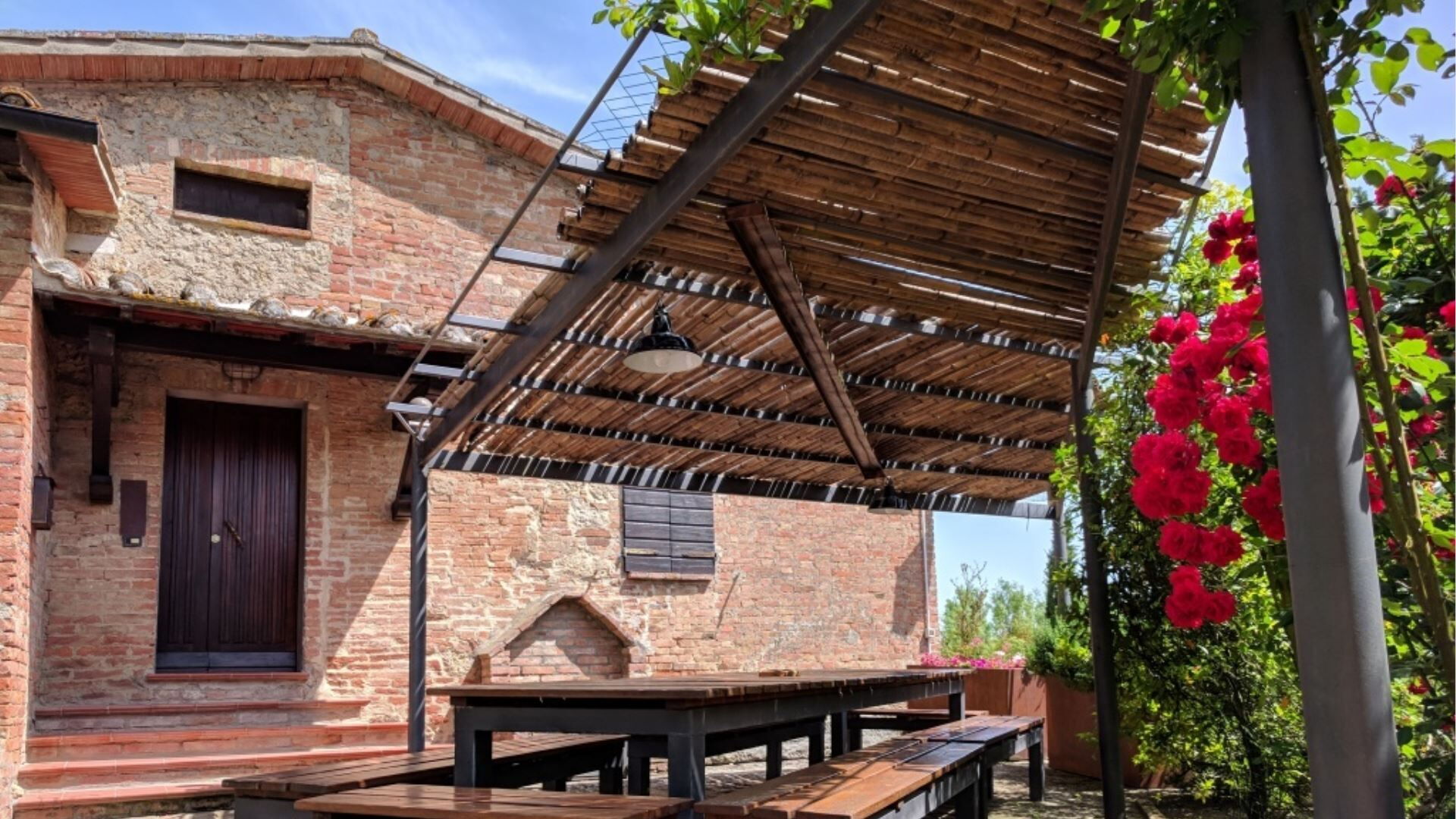 Die Außenbereiche von Podere della Bruciata sind darauf ausgelegt, Ihren Genuss der atemberaubenden toskanischen Landschaft zu maximieren. Das Herzstück ist ein großzügiger Swimmingpool mit den Maßen 7 mal 14 Meter und einer Tiefe von 1 bis 1,50 Meter, der durch einen kaskadierenden Wasserfall wunderschön aufgewertet wird und eine beruhigende Atmosphäre schafft. Der Pool ist von gepflegten Grünflächen umgeben, die sich perfekt zum Sonnenbaden und zur Entspannung im Freien eignen. Sie finden eine geräumige Veranda mit einem Pavillon und Tischen vor, die schattige Bereiche für Mahlzeiten im Freien bietet, während Sie den Panoramablick über die umliegenden Hügel genießen. Eine Grillmöglichkeit steht Ihnen für kulinarische Freuden im Freien zur Verfügung und ermöglicht es Ihnen, köstliche Mahlzeiten unter freiem Himmel zuzubereiten. Der Scheunenteil des Anwesens verfügt über eine eigene Veranda mit direktem Blick auf den Poolbereich, während das Hauptgebäude eine charmante Gartenecke mit Ausblick auf Chiusi bietet. Der Swimmingpool ist vom 15. April bis zum 15. Oktober geöffnet und gewährleistet somit die Verfügbarkeit während der wärmeren Monate.