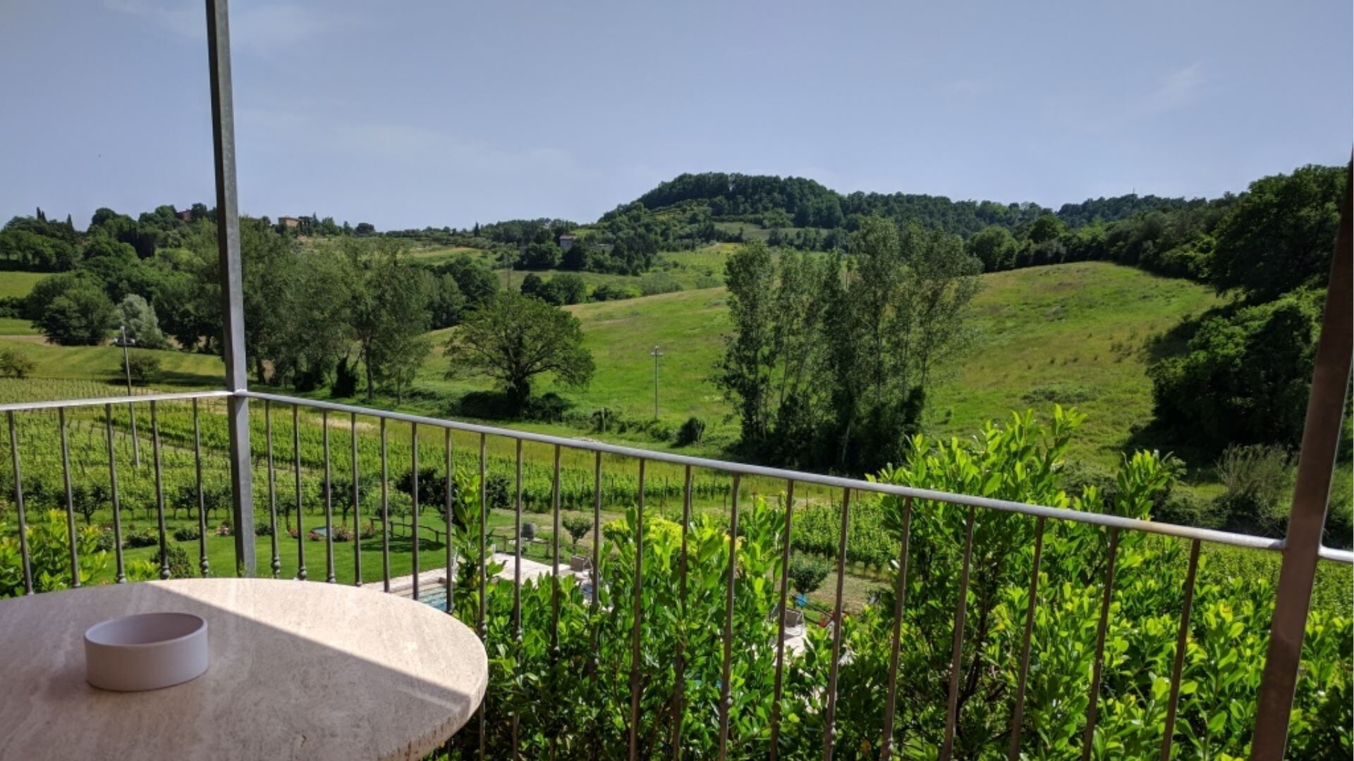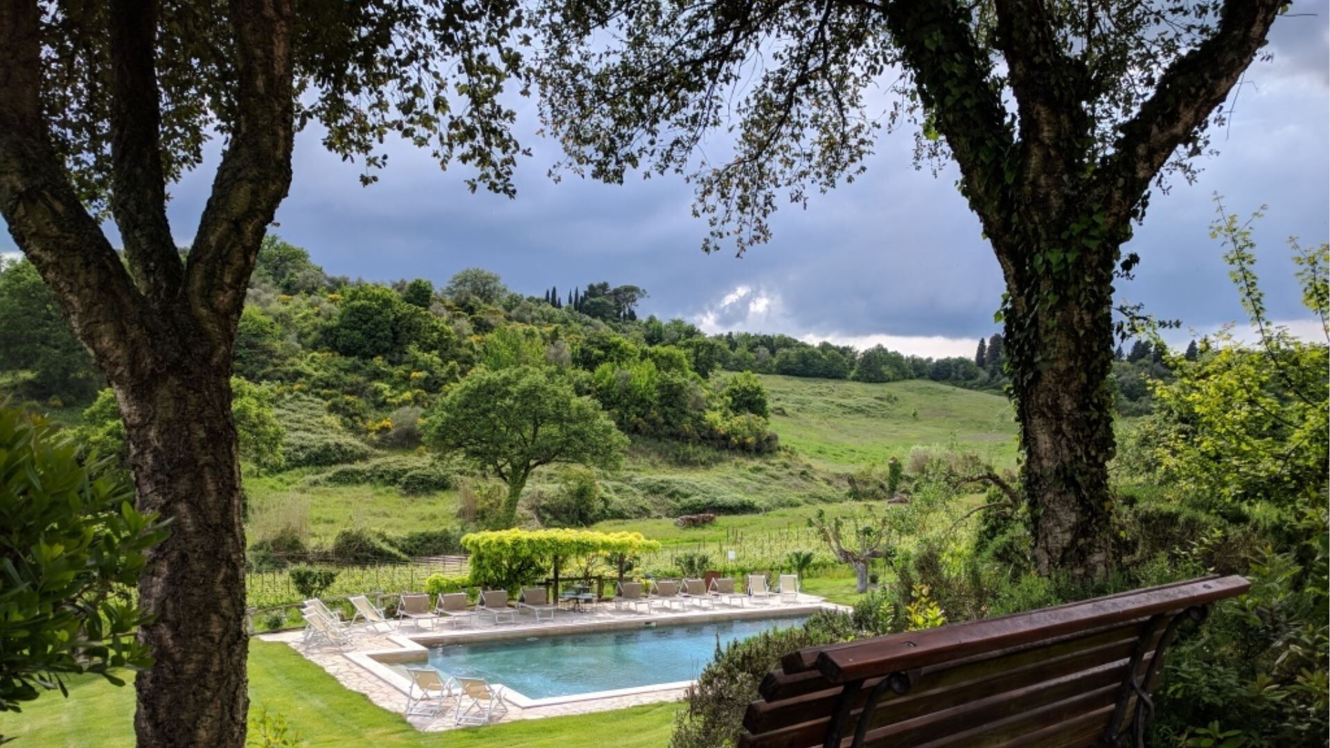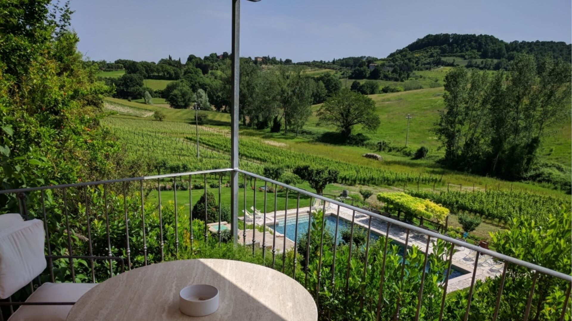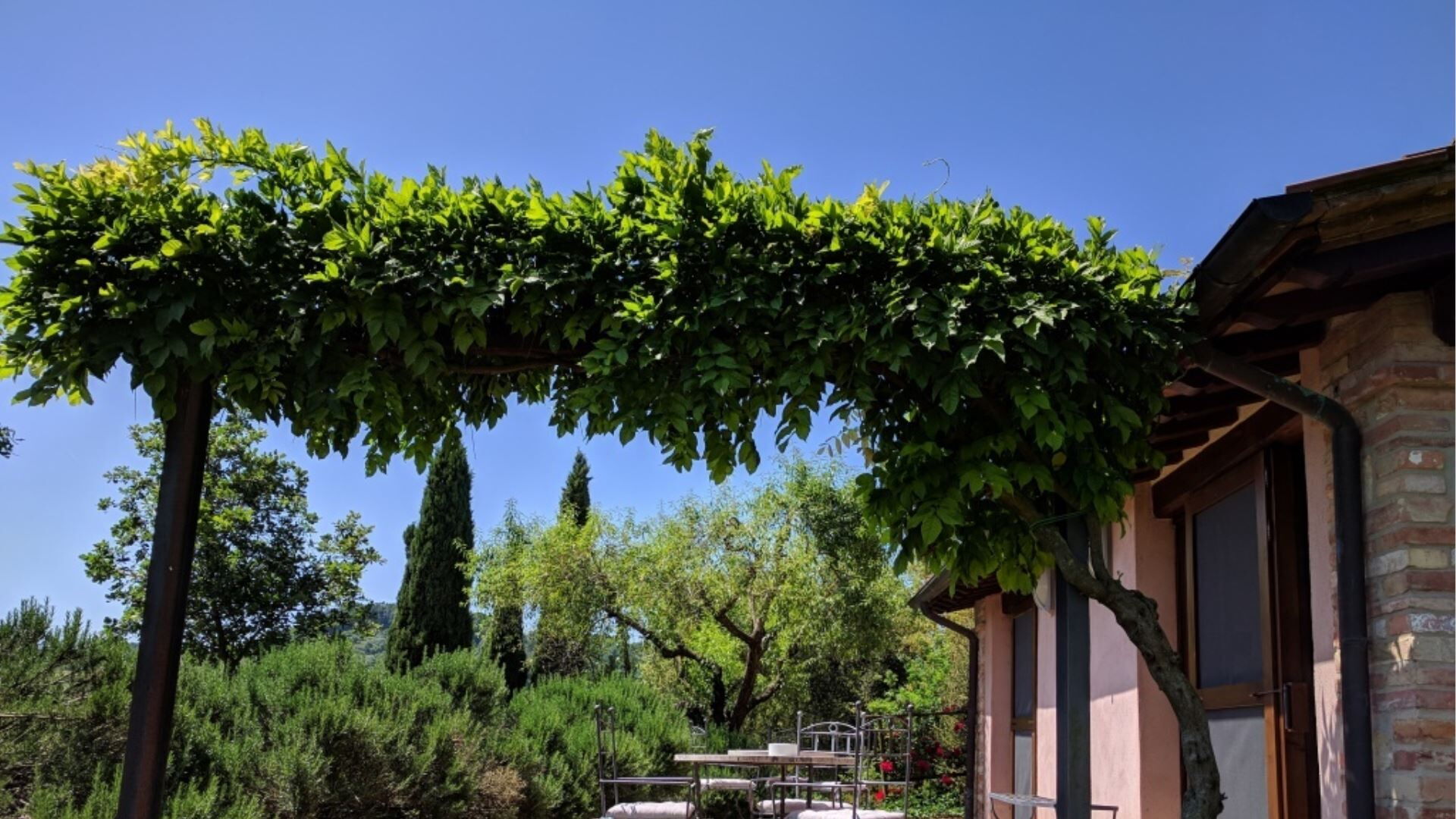 Die Außenbereiche von Podere della Bruciata sind darauf ausgelegt, Ihren Genuss der atemberaubenden toskanischen Landschaft zu maximieren. Das Herzstück ist ein großzügiger Swimmingpool mit den Maßen 7 mal 14 Meter und einer Tiefe von 1 bis 1,50 Meter, der durch einen kaskadierenden Wasserfall wunderschön aufgewertet wird und eine beruhigende Atmosphäre schafft. Der Pool ist von gepflegten Grünflächen umgeben, die sich perfekt zum Sonnenbaden und zur Entspannung im Freien eignen. Sie finden eine geräumige Veranda mit einem Pavillon und Tischen vor, die schattige Bereiche für Mahlzeiten im Freien bietet, während Sie den Panoramablick über die umliegenden Hügel genießen. Eine Grillmöglichkeit steht Ihnen für kulinarische Freuden im Freien zur Verfügung und ermöglicht es Ihnen, köstliche Mahlzeiten unter freiem Himmel zuzubereiten. Der Scheunenteil des Anwesens verfügt über eine eigene Veranda mit direktem Blick auf den Poolbereich, während das Hauptgebäude eine charmante Gartenecke mit Ausblick auf Chiusi bietet. Der Swimmingpool ist vom 15. April bis zum 15. Oktober geöffnet und gewährleistet somit die Verfügbarkeit während der wärmeren Monate.