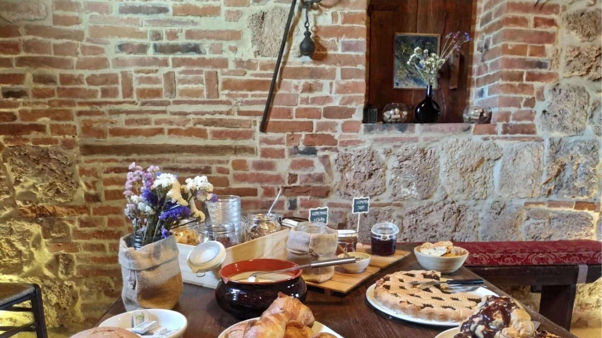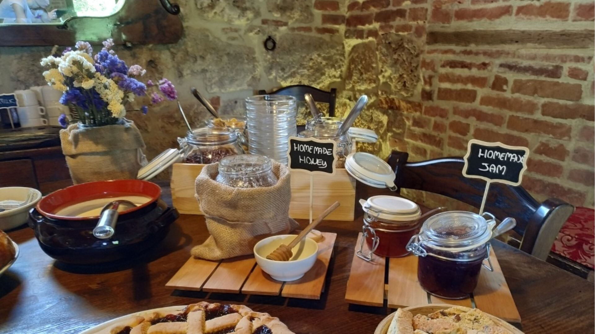Das Anwesen ist umfassend ausgestattet, um Ihren Komfort während Ihres gesamten Aufenthalts zu gewährleisten. Die Küchenbereiche verfügen über moderne Annehmlichkeiten, darunter eine Geschirrspülmaschine sowohl in der Hauptküche als auch in der Küchenzeile im ersten Stock, wodurch die Zubereitung und das Aufräumen von Mahlzeiten mühelos werden. Für Ihre Unterhaltungsbedürfnisse steht Ihnen ein Fernseher mit Satellitenfernsehen für Ihr Sehvergnügen zur Verfügung. Die gemütliche rustikale Taverne im Erdgeschoss wird durch einen attraktiven Kamin bereichert, der an kühleren Abenden eine warme und einladende Atmosphäre schafft. Eine Waschmaschine befindet sich praktischerweise im Service-Badezimmer und bietet praktische Wäschemöglichkeiten während Ihres Aufenthalts. Zu den Außenannehmlichkeiten gehört ein Grillbereich, der sich perfekt für Grillerlebnisse und Kochen im Freien eignet. Der weitläufige private Garten umgibt das Anwesen und bietet wunderschöne Ausblicke und ruhige Bereiche zur Entspannung. Heizung ist verfügbar für Ihren Komfort, mit Heizungsanlagen, die im gesamten Bauernhaus vorhanden sind. Jedes Zimmer im Anwesen ist mit Moskitonetzen und Ventilatoren ausgestattet, um Ihren Komfort bei wärmerem Wetter zu gewährleisten, und ein Badezimmer im Hauptgebäude ist speziell angepasst, um für Gäste mit Behinderungen geeignet zu sein.
