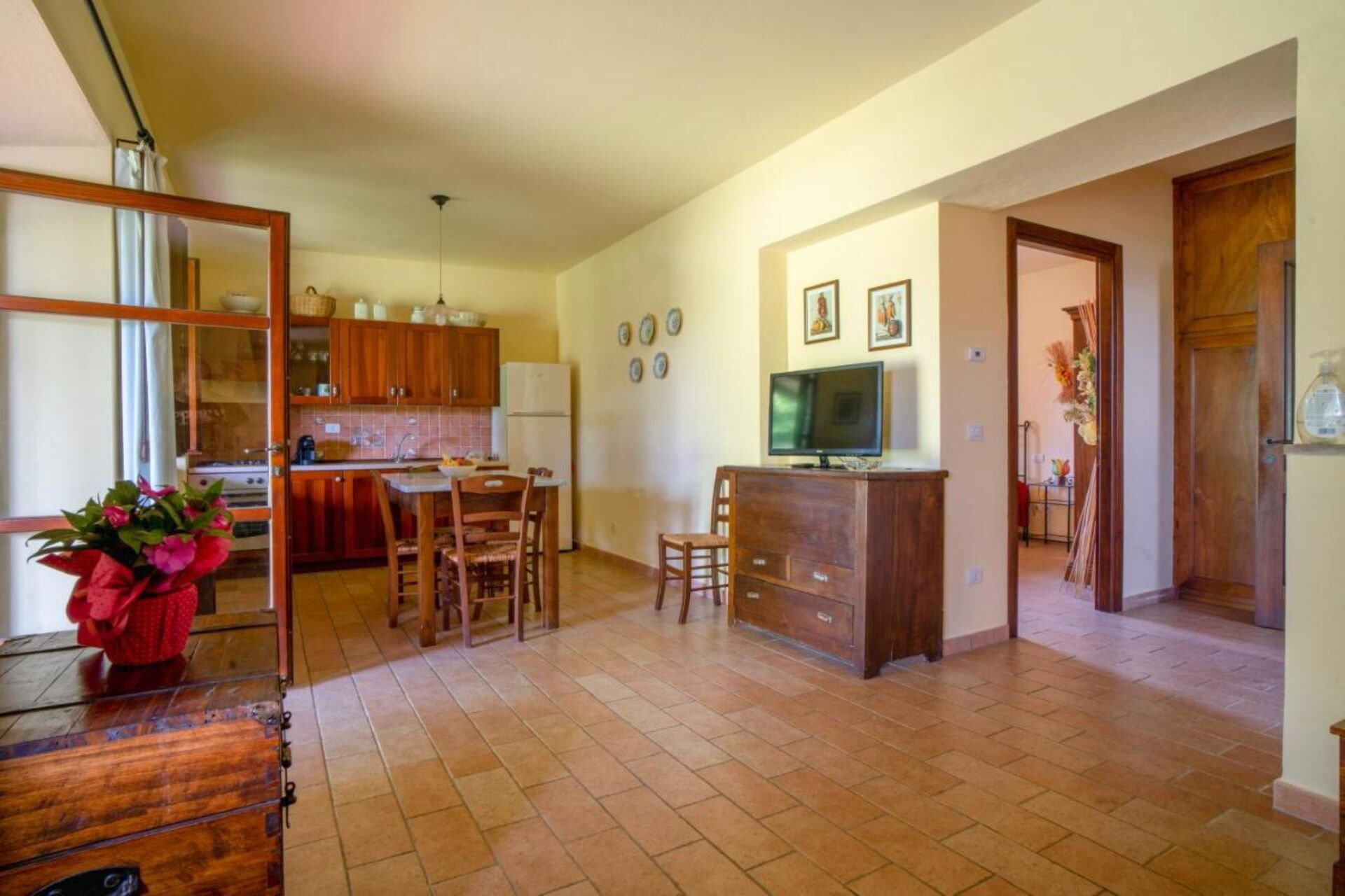 Podere dei Limoni bietet Platz für maximal 12 Gäste in seinen drei Apartments und zusätzlichem Wohnraum. Das Anwesen verfügt über insgesamt 6 Schlafzimmer und 4 Badezimmer. Das Apartment Quercia ist die größte Einheit und bietet ein Esszimmer mit Kochnische und Kamin, 2 Doppelschlafzimmer, 1 Einzelzimmer mit der Möglichkeit, ein weiteres Einzelbett hinzuzufügen, um eine Doppel- oder Zweibettkonfiguration zu bilden, ein Doppelschlafsofa und 2 Badezimmer. Dieses Apartment verfügt außerdem über ein geräumiges 70 Quadratmeter großes Wohnzimmer, das als Gemeinschaftsbereich für alle anderen Einheiten dient und die Möglichkeit bietet, gesellige Momente zu teilen und gemeinsam in einer einladenden Atmosphäre zu speisen. Das Apartment Il Cerro besteht aus einer Küche, einem Esszimmer mit Kamin, 1 Doppelschlafzimmer, 1 Einzelzimmer mit der Möglichkeit, ein weiteres Einzelbett hinzuzufügen, um ein Doppel- oder Zweibett zu bilden, einem Doppelschlafsofa und 1 Badezimmer, ergänzt durch eine große überdachte Veranda. Das Apartment Lo Strucchio, speziell für Menschen mit motorischen Behinderungen konzipiert, umfasst ein Esszimmer mit Kochnische und Kamin, 1 Doppelschlafzimmer, ein Doppelschlafsofa und 1 Badezimmer mit einer Gesamtfläche von etwa 70 Quadratmetern. La Ghiandaia ist ein geräumiges 70 Quadratmeter großes Wohnzimmer im rustikalen Stil mit einem charmanten Kamin und einer voll ausgestatteten Küche mit Geschirrspüler, das ein authentisches und komfortables Erlebnis bietet.