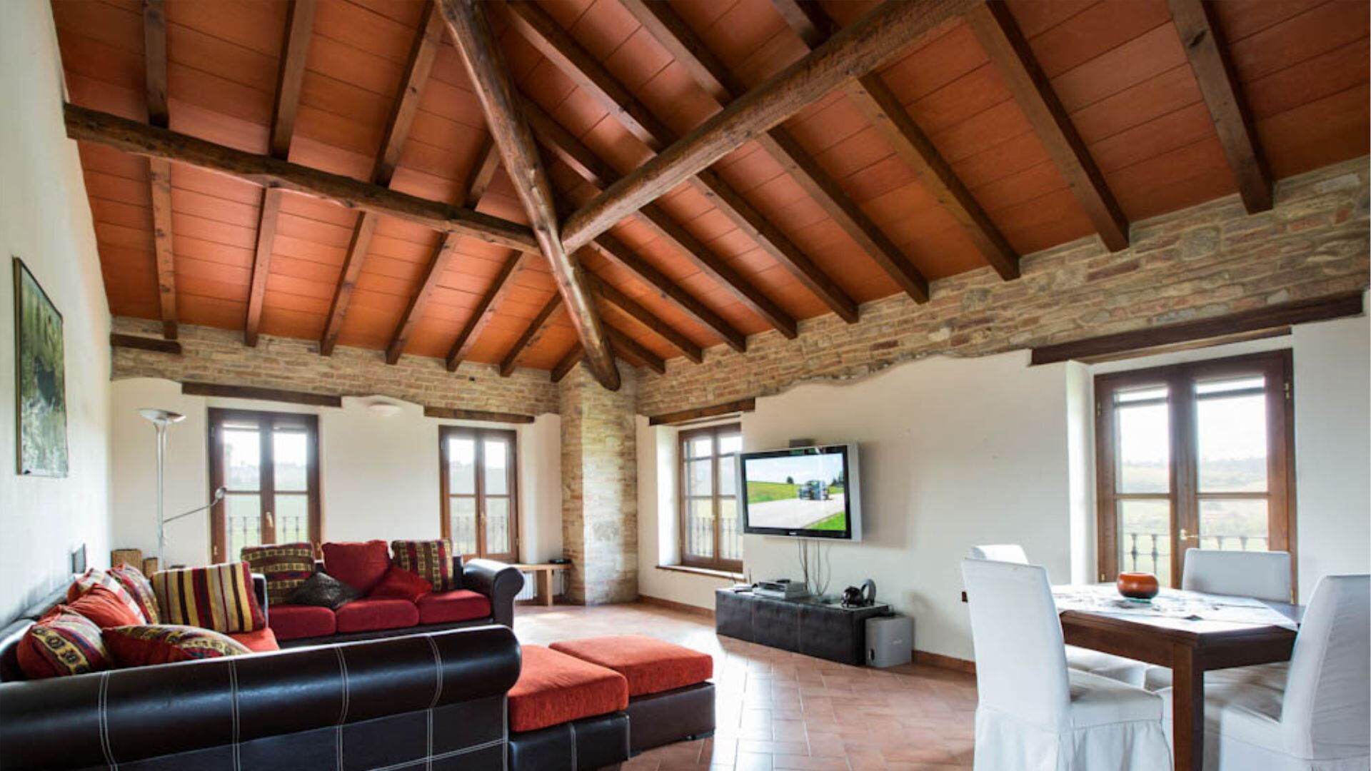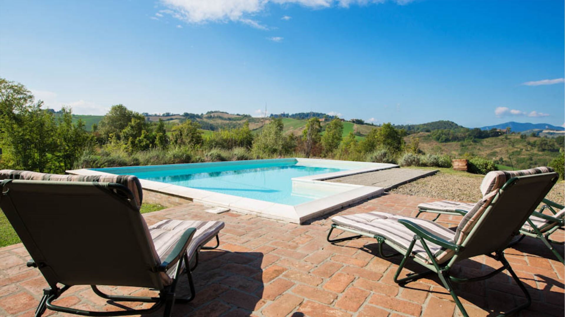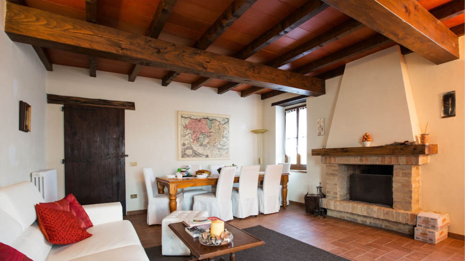 Die Villa erstreckt sich über drei Ebenen und bietet großzügige und komfortable Unterkünfte für bis zu 10 Gäste in 5 Schlafzimmern und 3 Badezimmern. Das Erdgeschoss verfügt über eine voll ausgestattete Küche, ein Doppelzimmer, ein Zweibettzimmer und ein Badezimmer mit Jet-Dusche. Wenn Sie in die erste Etage aufsteigen, entdecken Sie ein großes Panorama-Wohnzimmer mit separatem Essbereich, das einen weiten Blick über die umgebende Landschaft bietet, sowie drei weitere Schlafzimmer, bestehend aus zwei Doppelzimmern und einem Zweibettzimmer. Die erste Etage beherbergt zudem zwei Badezimmer, eines mit Dusche ausgestattet und das andere mit Badewanne. Das Untergeschoss enthält eine charaktervolle Taverne mit einer markanten Tonnengewölbedecke, die einen stimmungsvollen Raum für Zusammenkünfte und Unterhaltung bietet. Diese durchdachte Verteilung der Räume über mehrere Etagen gewährleistet Privatsphäre und Komfort für größere Gruppen und bewahrt gleichzeitig den authentischen Charme traditioneller emilianischer Architektur.