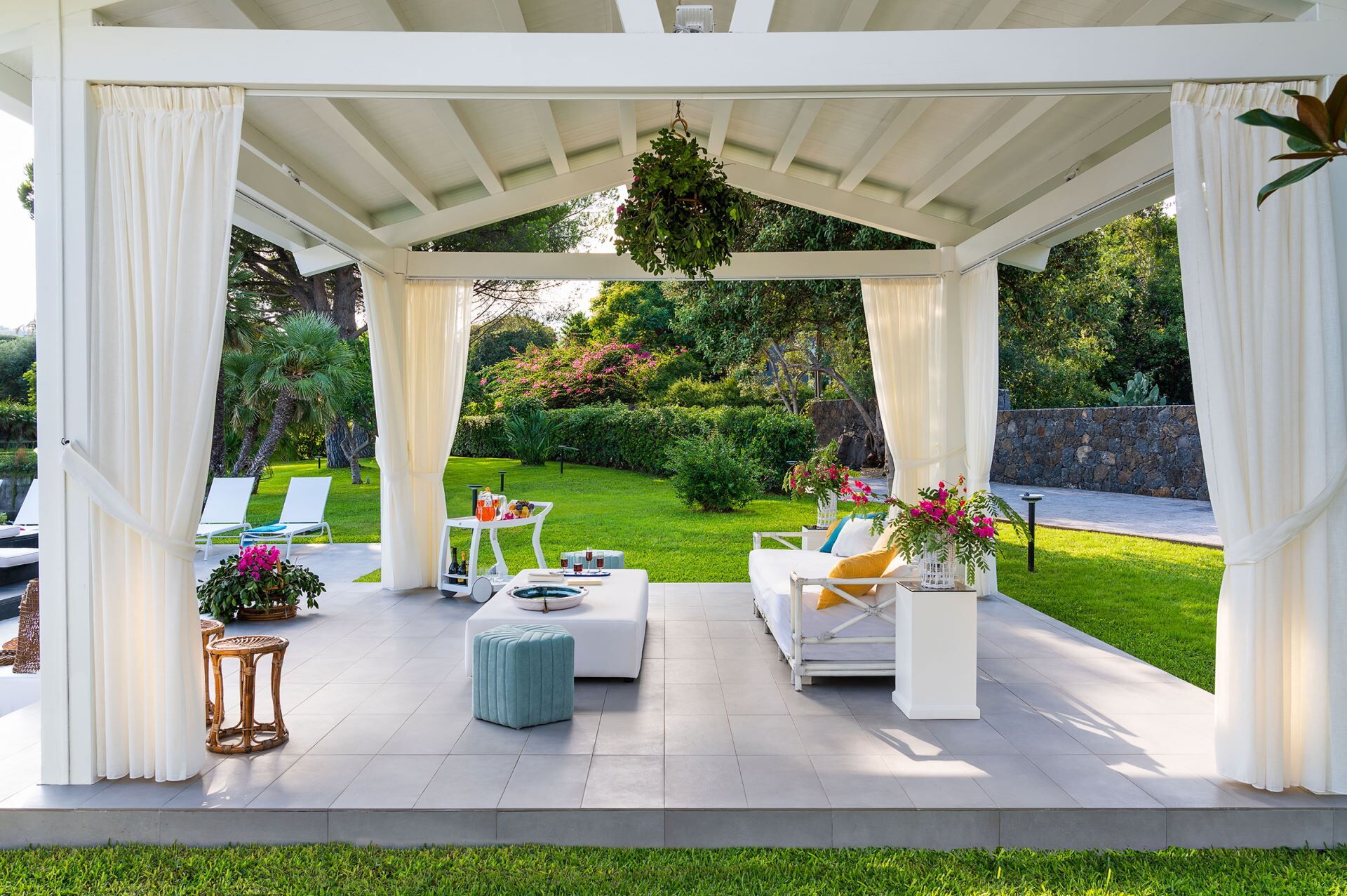 Die Außenbereiche der Villa Del Faro sind so gestaltet, dass Sie die atemberaubende Lage direkt am Meer optimal genießen können. Sie entdecken weitläufige Terrassen, die sich um das Anwesen erstrecken und mehrere Aussichtspunkte bieten, um die Meerblicke und die dramatischen Lavafelsformationen darunter zu bewundern. Der gepflegte Garten bildet einen grünen Rahmen für die Außenbereiche und bietet schattige Plätze sowie gepflegte Rasenflächen. Eine Veranda bietet überdachten Wohnraum im Freien, während ein Pavillon eine intime Umgebung für Mahlzeiten oder Entspannung im Freien schafft. Die Sonnenterrasse rund um den beeindruckenden 6 x 20 Meter großen Swimmingpool lädt Sie ein, sich zu entspannen und die mediterrane Sonne zu genießen. Der Pool selbst ist ein bemerkenswertes Merkmal mit Tiefen zwischen mindestens 1,50 Metern und maximal 4,00 Metern, perfekt sowohl für gemütliches Schwimmen als auch zum Tauchen. Ein Außenbad mit Dusche befindet sich in günstiger Lage für den Pool- und Gartenbereich. Der direkte Meerzugang bedeutet, dass Sie mühelos vom privaten Grundstück der Villa zur natürlichen Schönheit der Küstenlinie wechseln können, was diese Außenumgebung wirklich außergewöhnlich macht.
